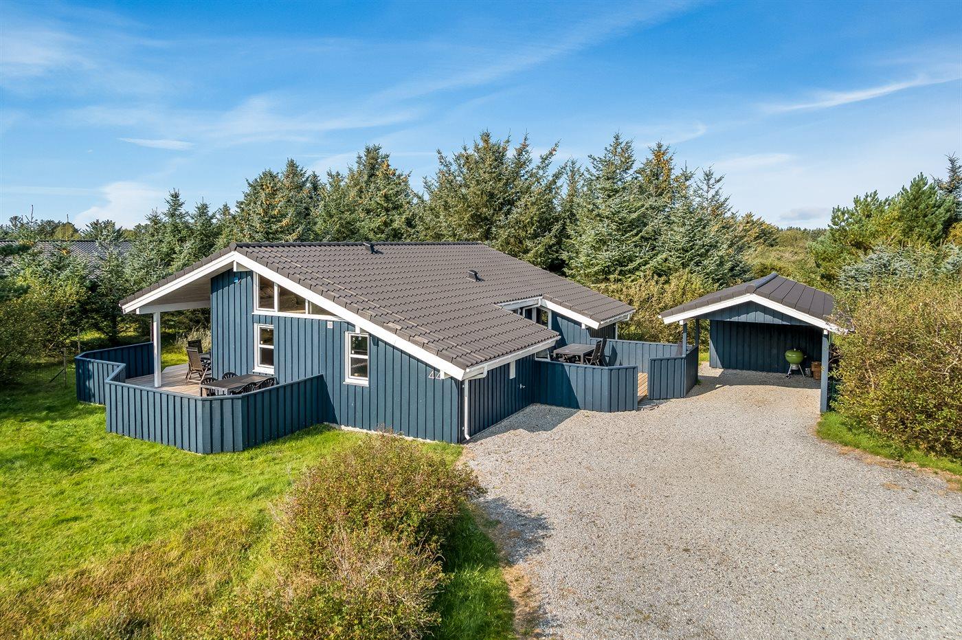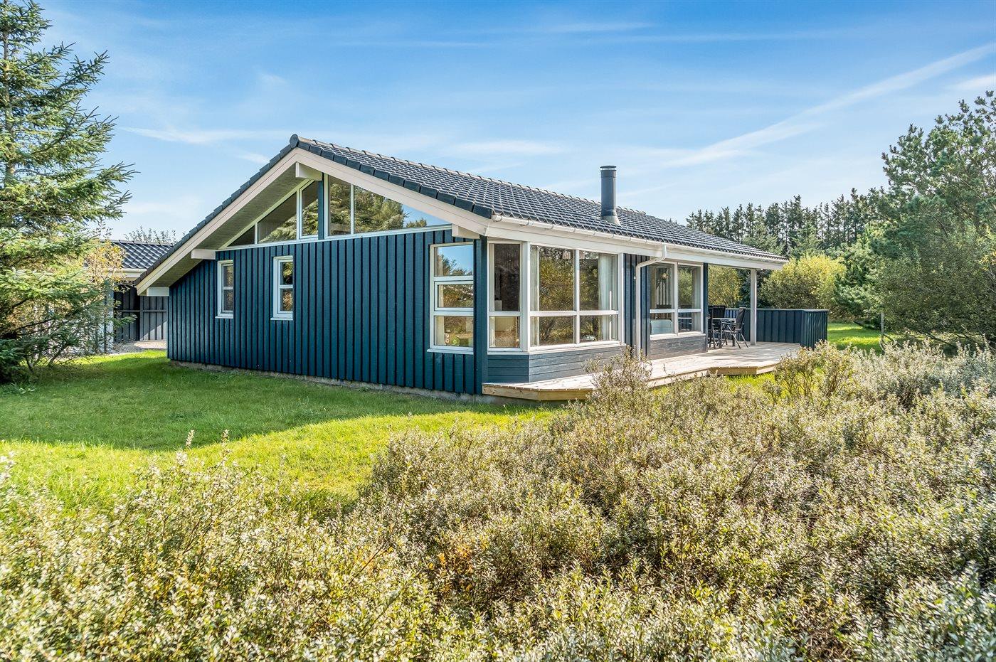 Luksuriøst sommerhus i fredeligt naturområde nær Løkken med spa, sauna og store terrasser.