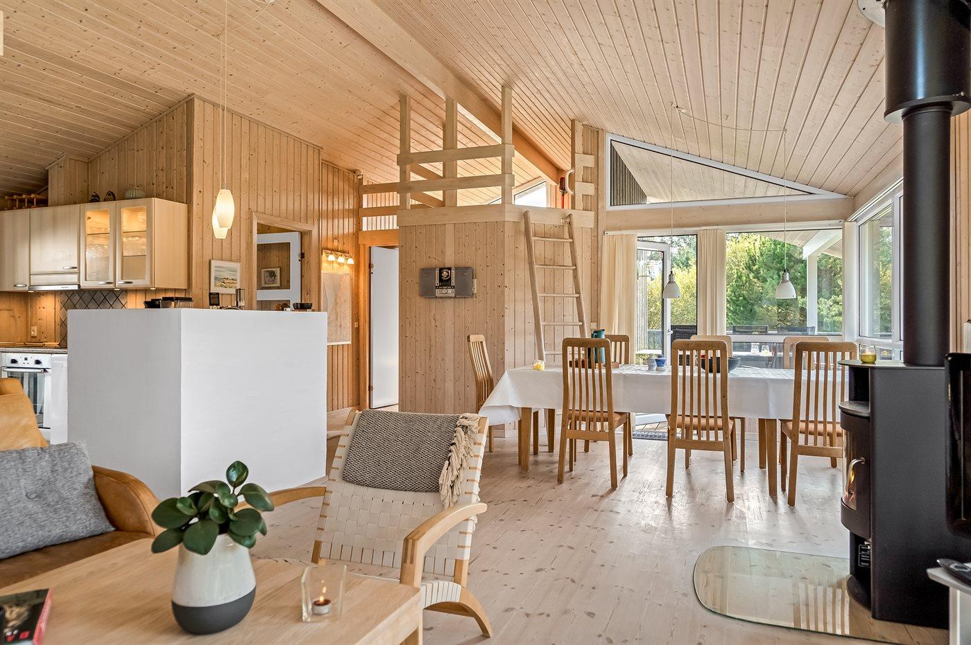 Sommerhuset egner sig til 6 personer samt 1 barn op til 3 år. Ferieboligen er på 94 m² og er bygget i 2004. Det er tilladt at medbringe 2 husdyr. Ferieboligen har vaskemaskine. Tørretumbler. Frysekapacitet på 45 liter. Der er desuden brændeovn. Til de små er der 1 stk. barnestol.