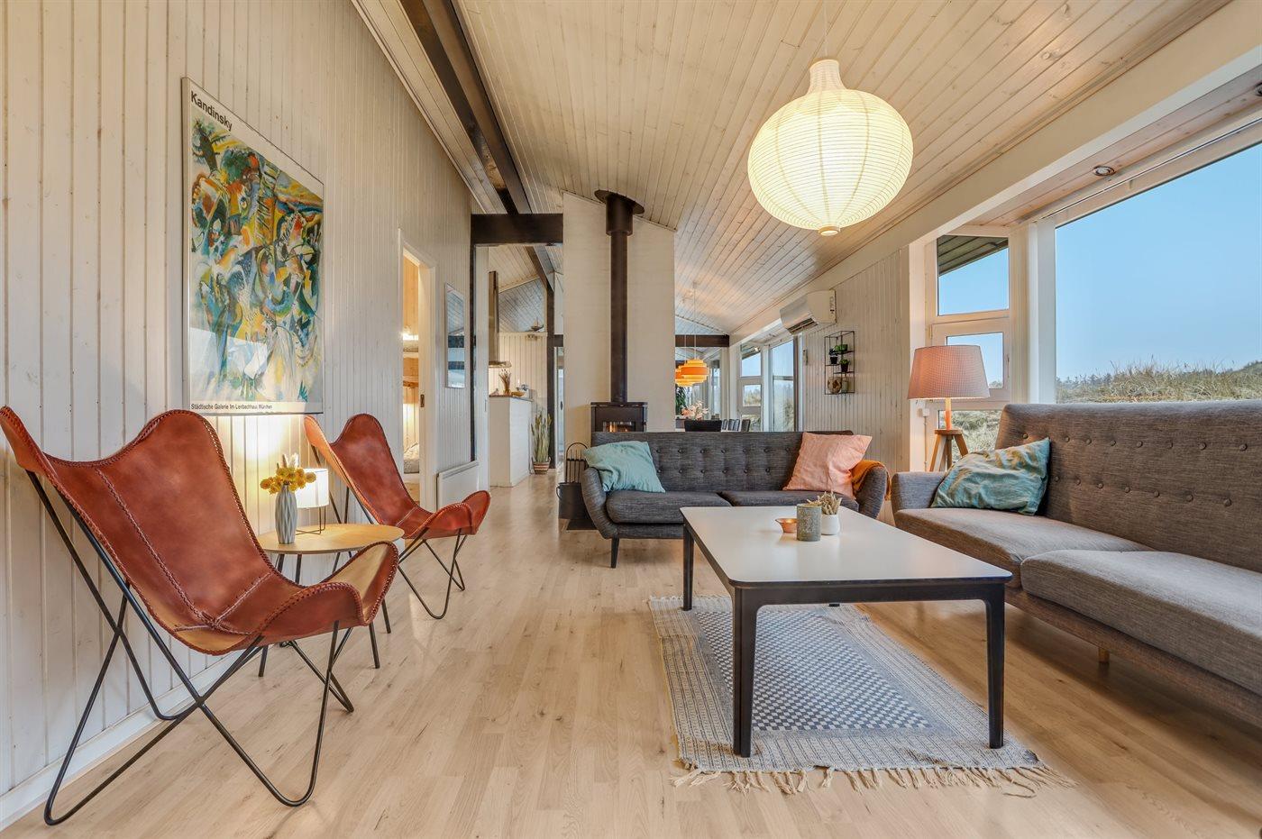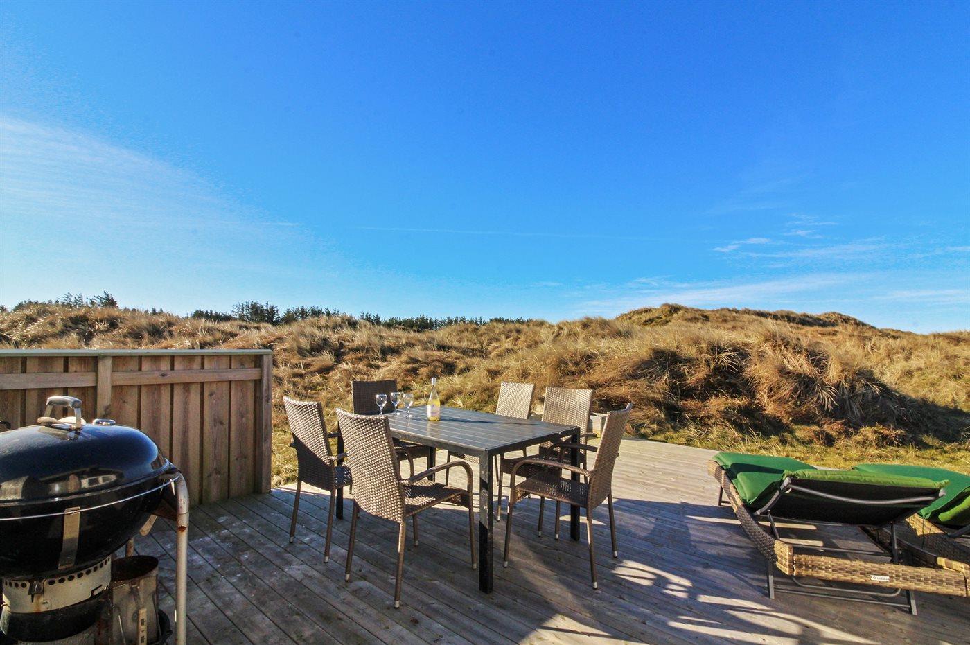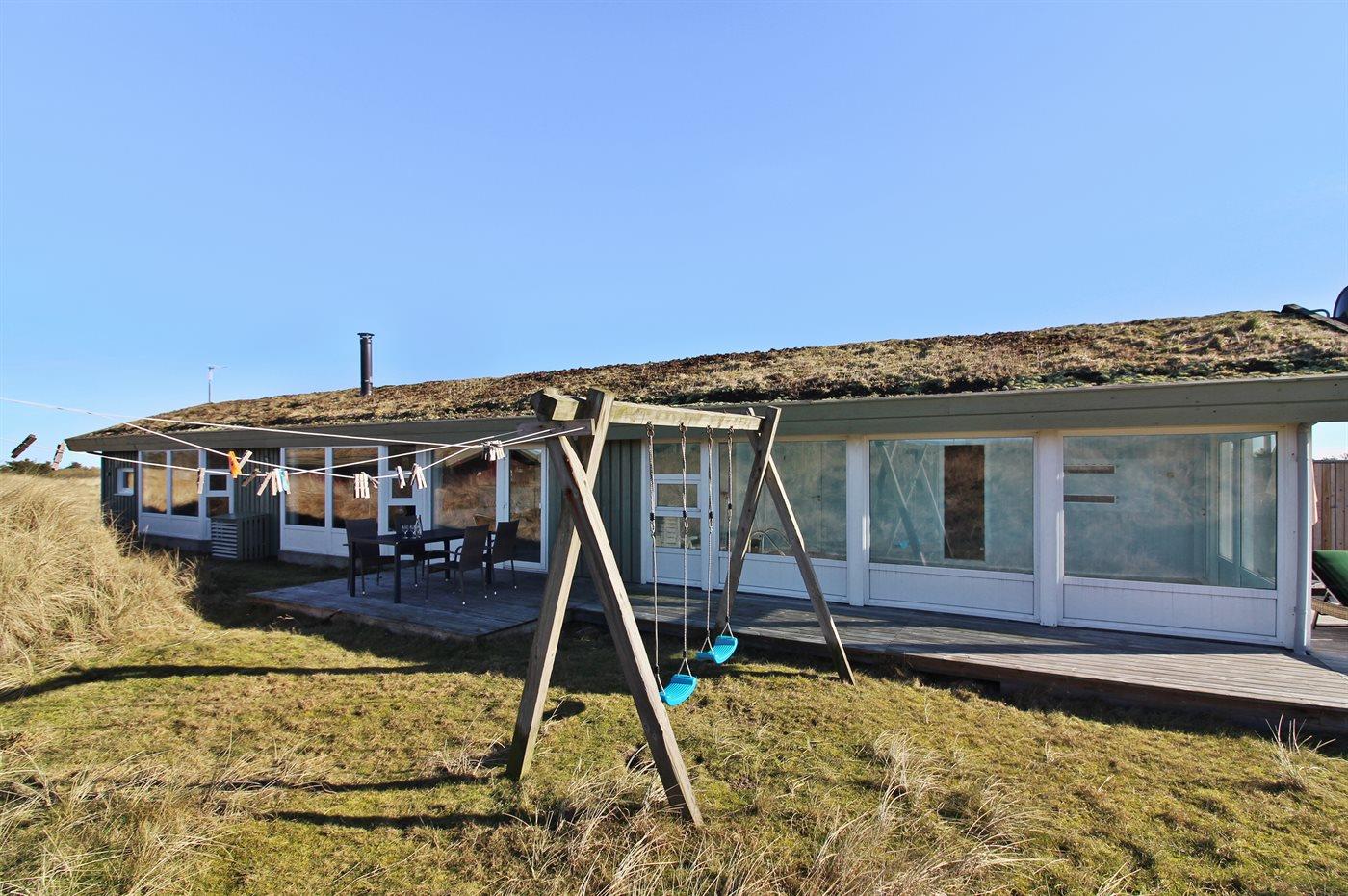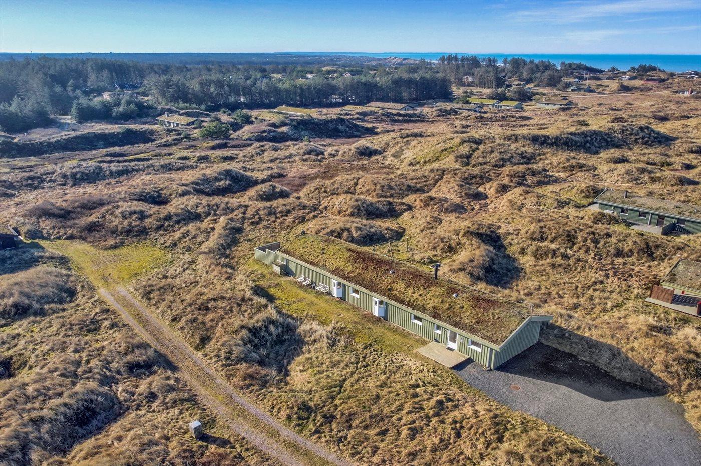 Dejligt sommerhus i Løkken med indendørs pool, spa, sauna og stor terrasse på kuperet naturgrund.