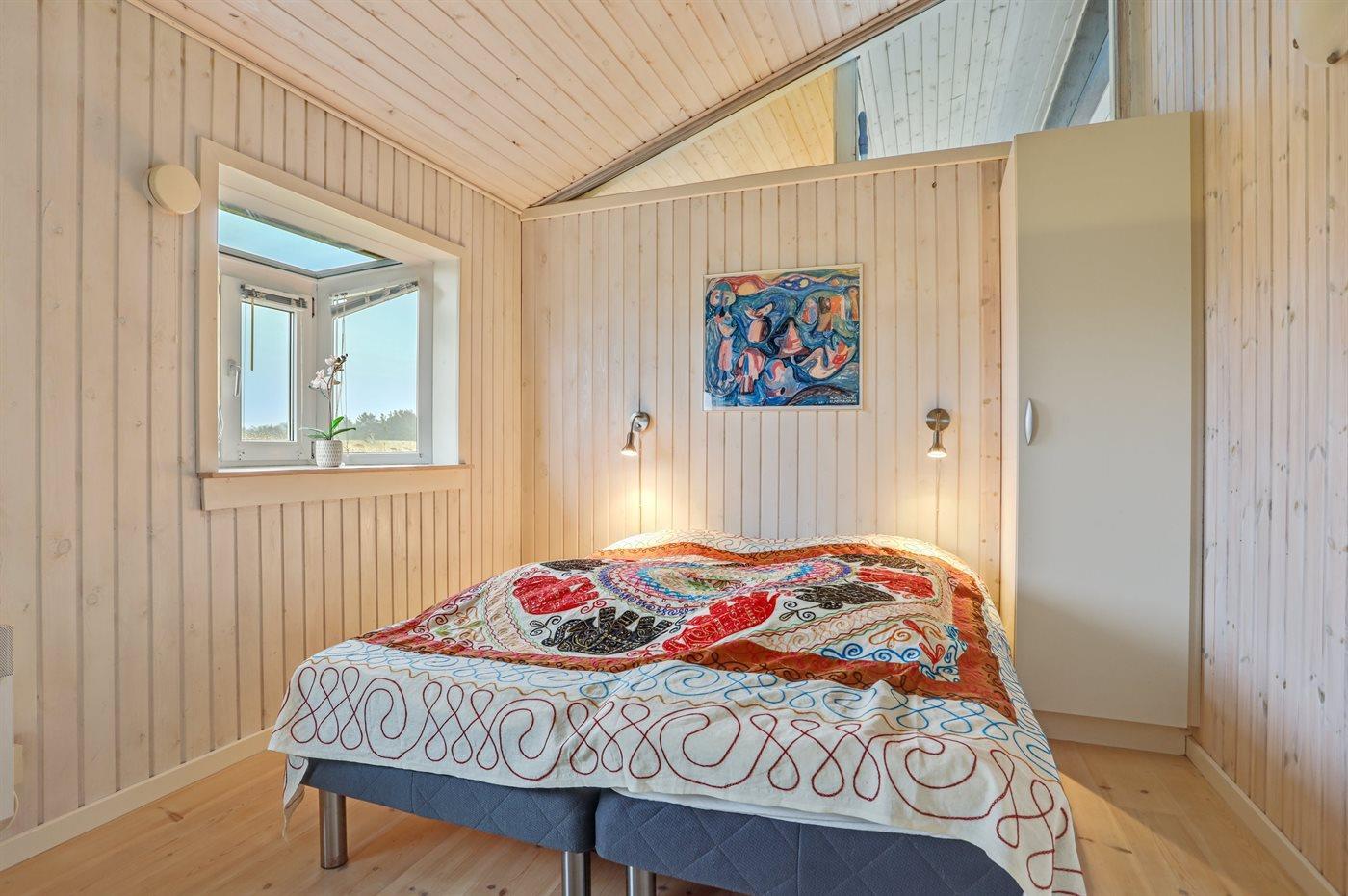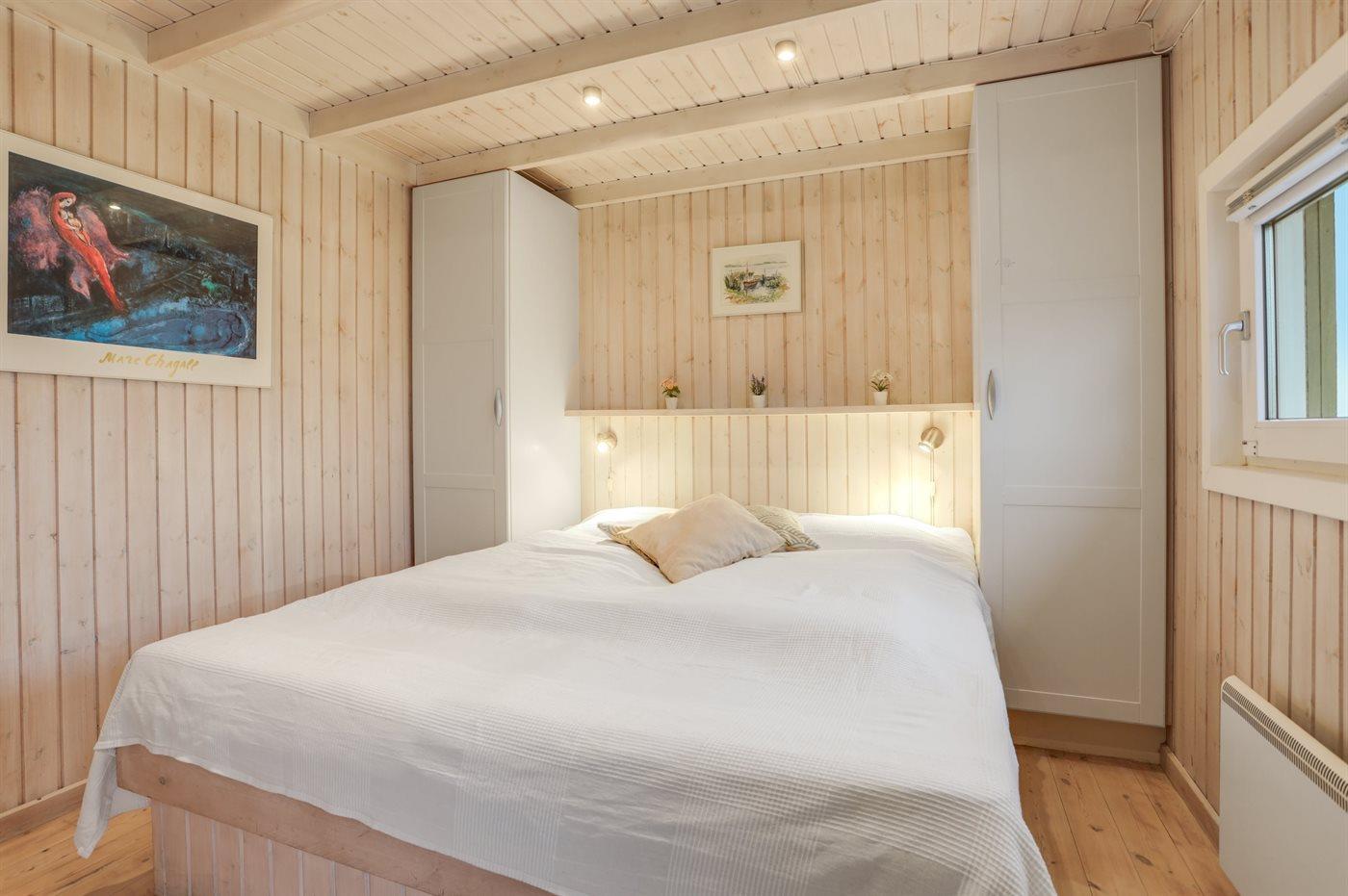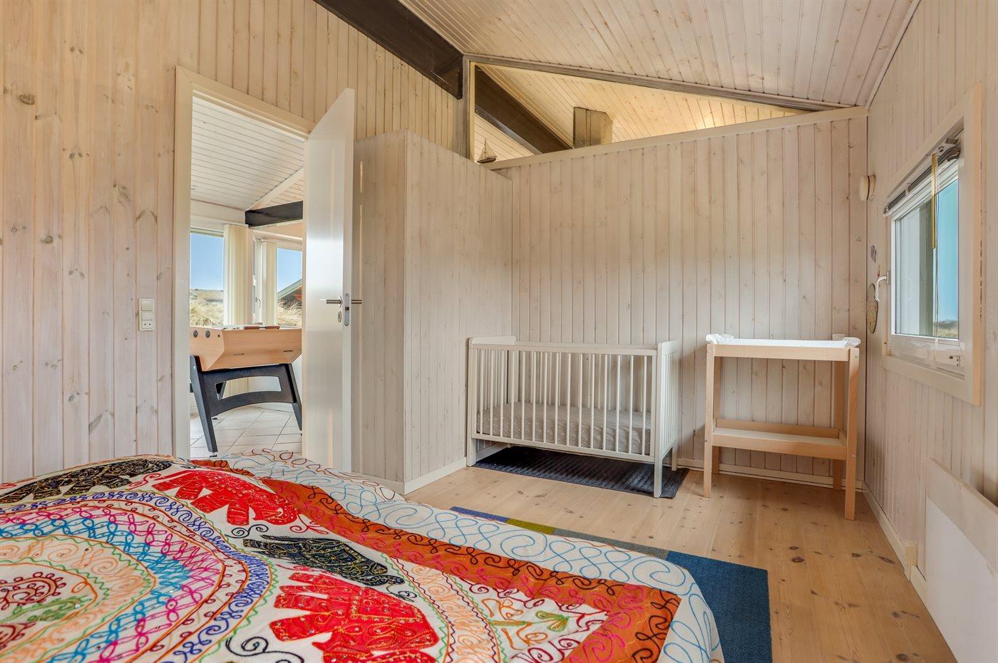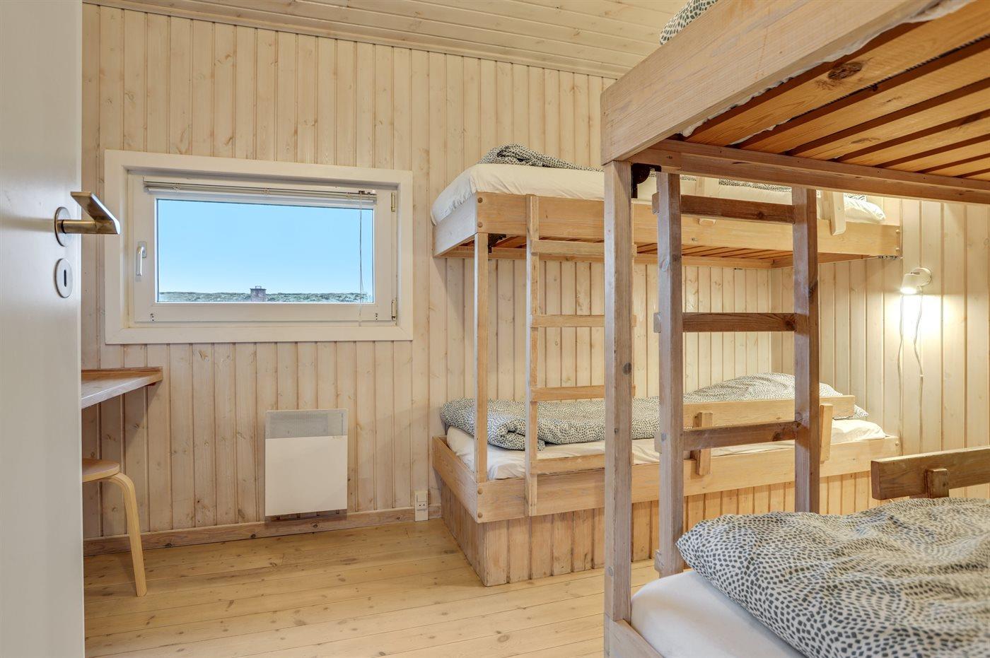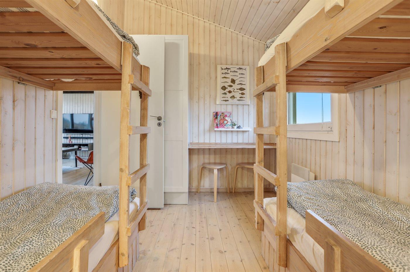 Der er i alt 4 soveværelser. Sovepladserne fordeler sig på: 6 sovepladser i dobbeltsenge. 4 sovepladser i køjesenge. Derudover er der 1 stk. barneseng.