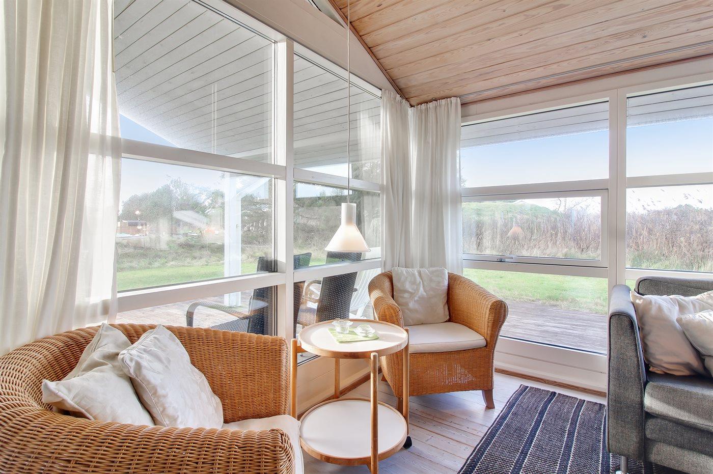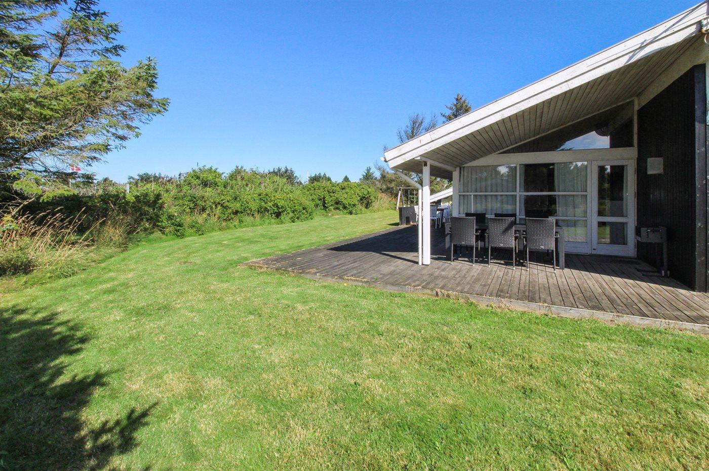 Skønt og rummeligt sommerhus beliggende op mod et fælles naturareal på en lukket grund, for enden af blind vej, i et fredeligt og naturskønt sommerhusområde nær stranden og Vesterhavet.