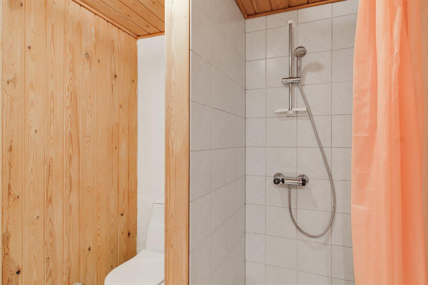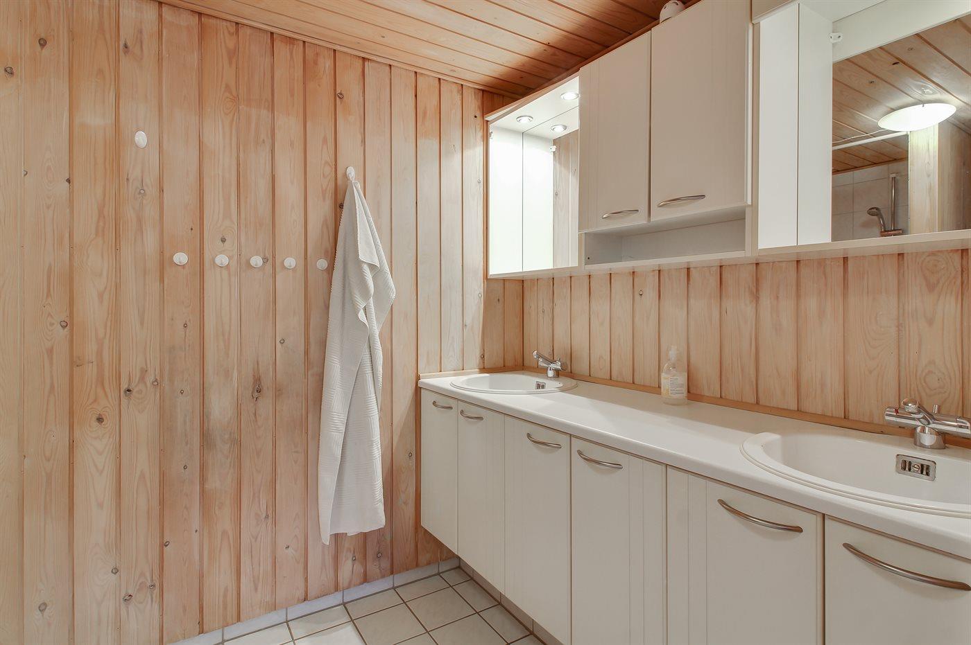 Der er 2 badeværelser med bruseniche og 2 toiletter. Der er gulvvarme på 1 badeværelse. I saunaen er der mulighed for afslapning.