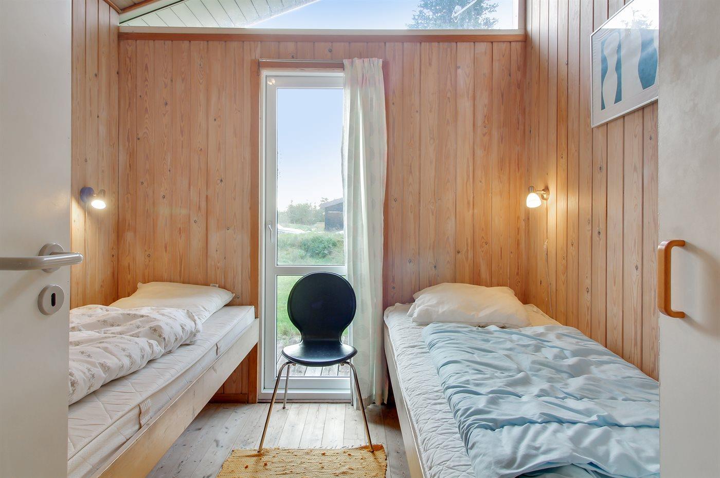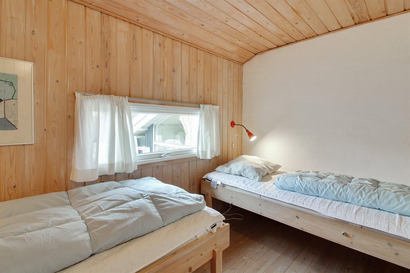 Der er i alt 4 soveværelser. Sovepladserne fordeler sig på: 4 sovepladser i dobbeltsenge. 4 sovepladser i enkeltsenge. Derudover er der 1 stk. barneseng.