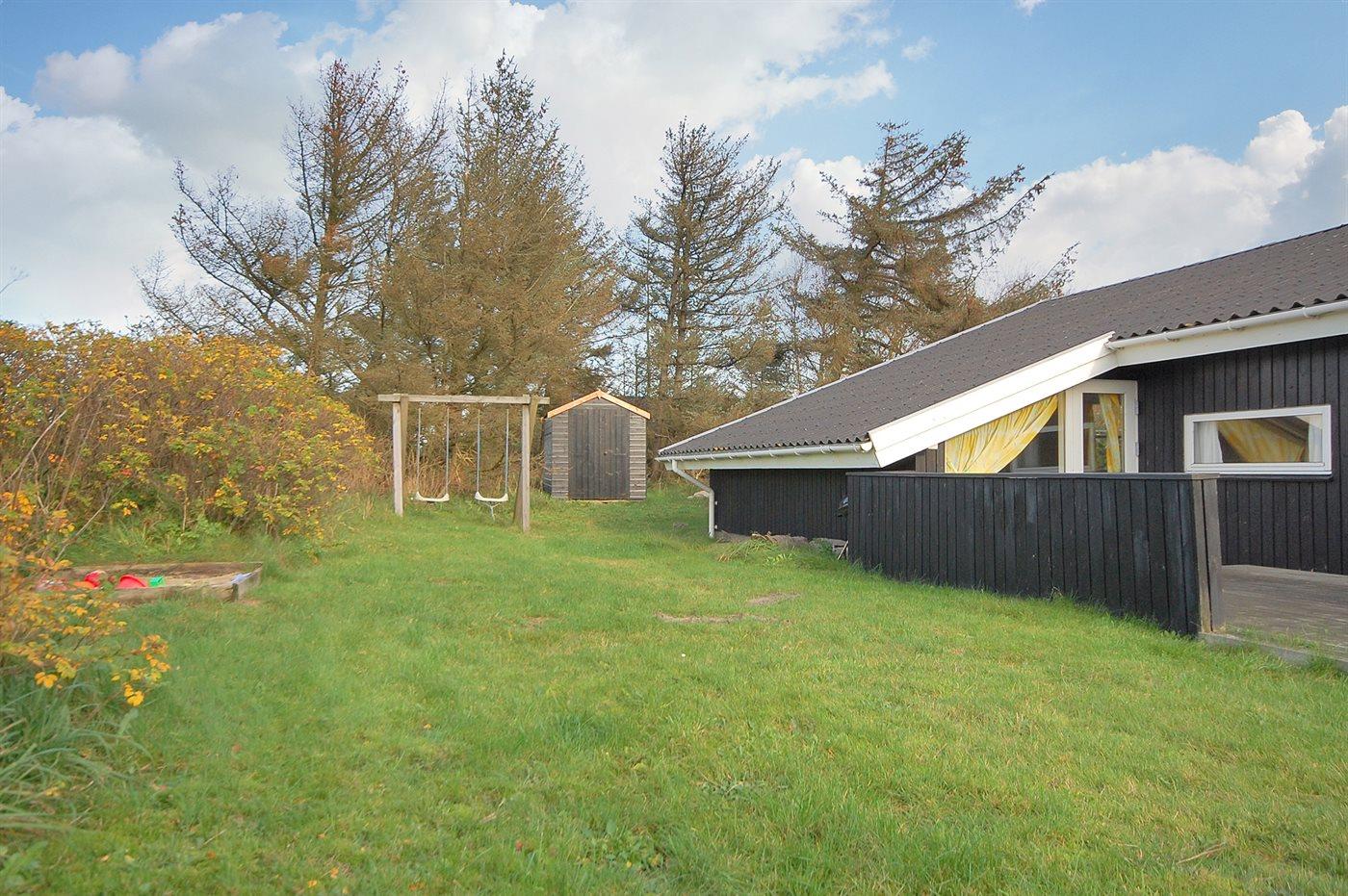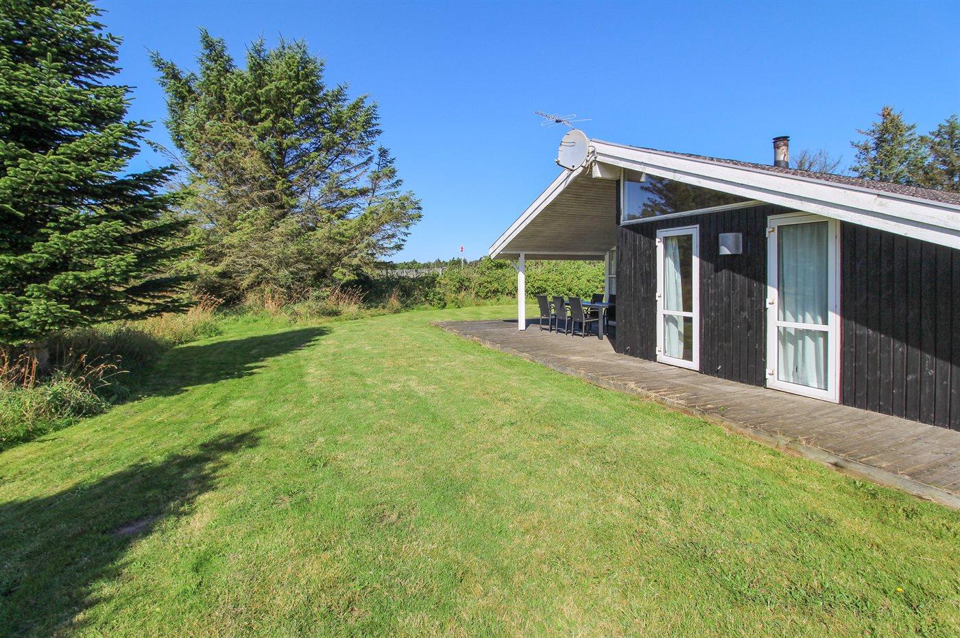 Ferieboligen er beliggende på en 1200 m² stor naturgrund. Der er 900 m til havet. Nærmeste forretning er beliggende i en afstand af 500 m. Til ferieboligen hører 45 m² terrasseareal. Desuden er der 12 m² overdækket terrasse. Gynge. Sandkasse. Parkering ved ferieboligen.