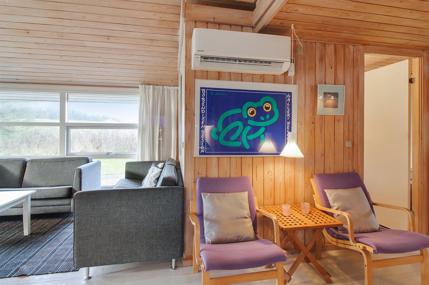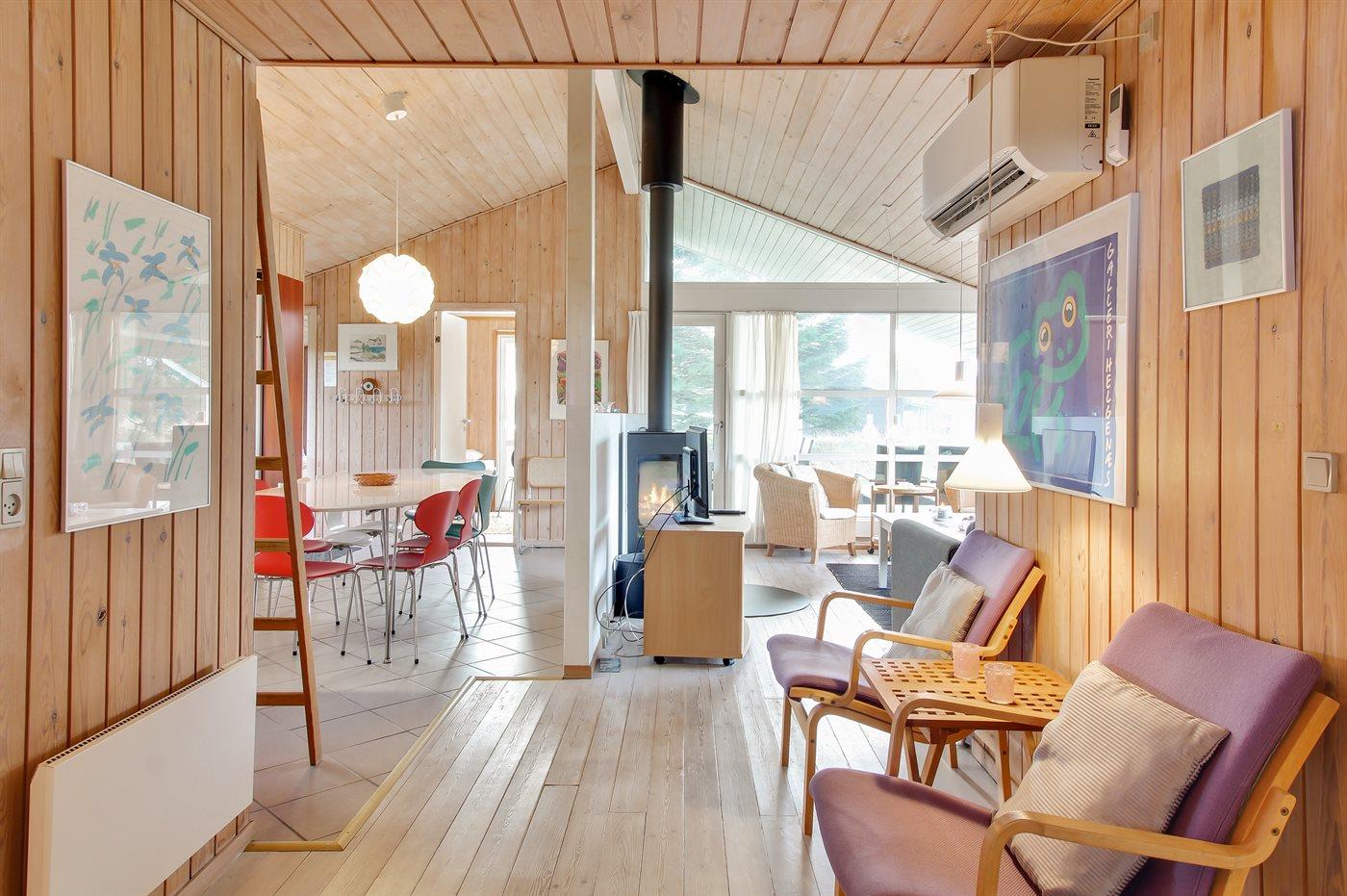 Sommerhuset egner sig til 8 personer samt 1 barn op til 3 år. Ferieboligen er på 158 m² og er bygget i 1995. Det er tilladt at medbringe 2 husdyr. Ferieboligen er udstyret med energibesparende varmepumpe. Ferieboligen har vaskemaskine. Tørretumbler. Frysekapacitet på 50 liter. Der er desuden brændeovn. Til de små er der 1 stk. barnestol.