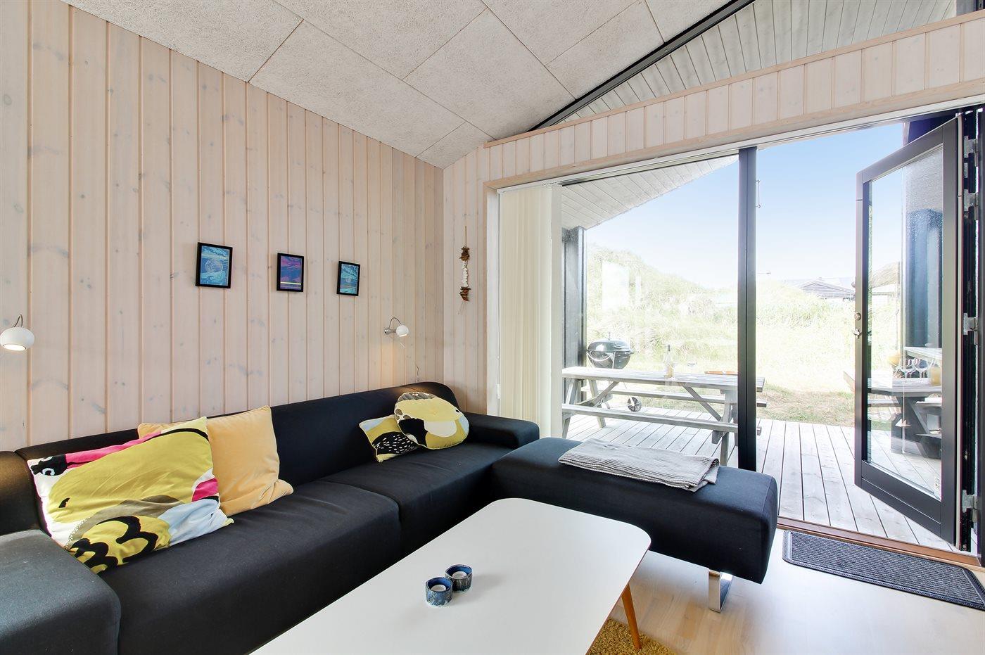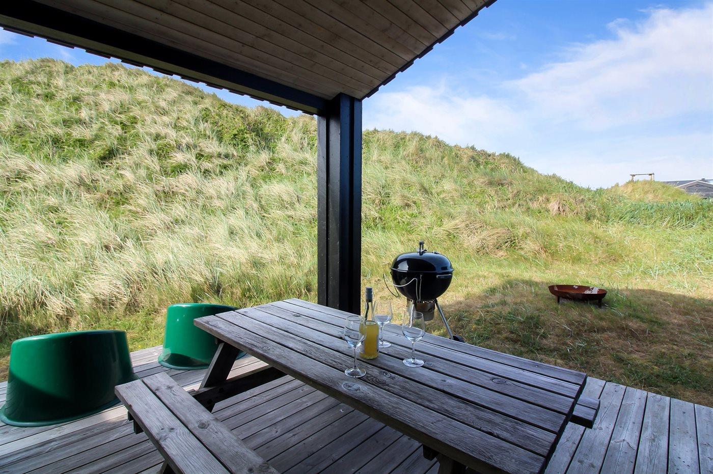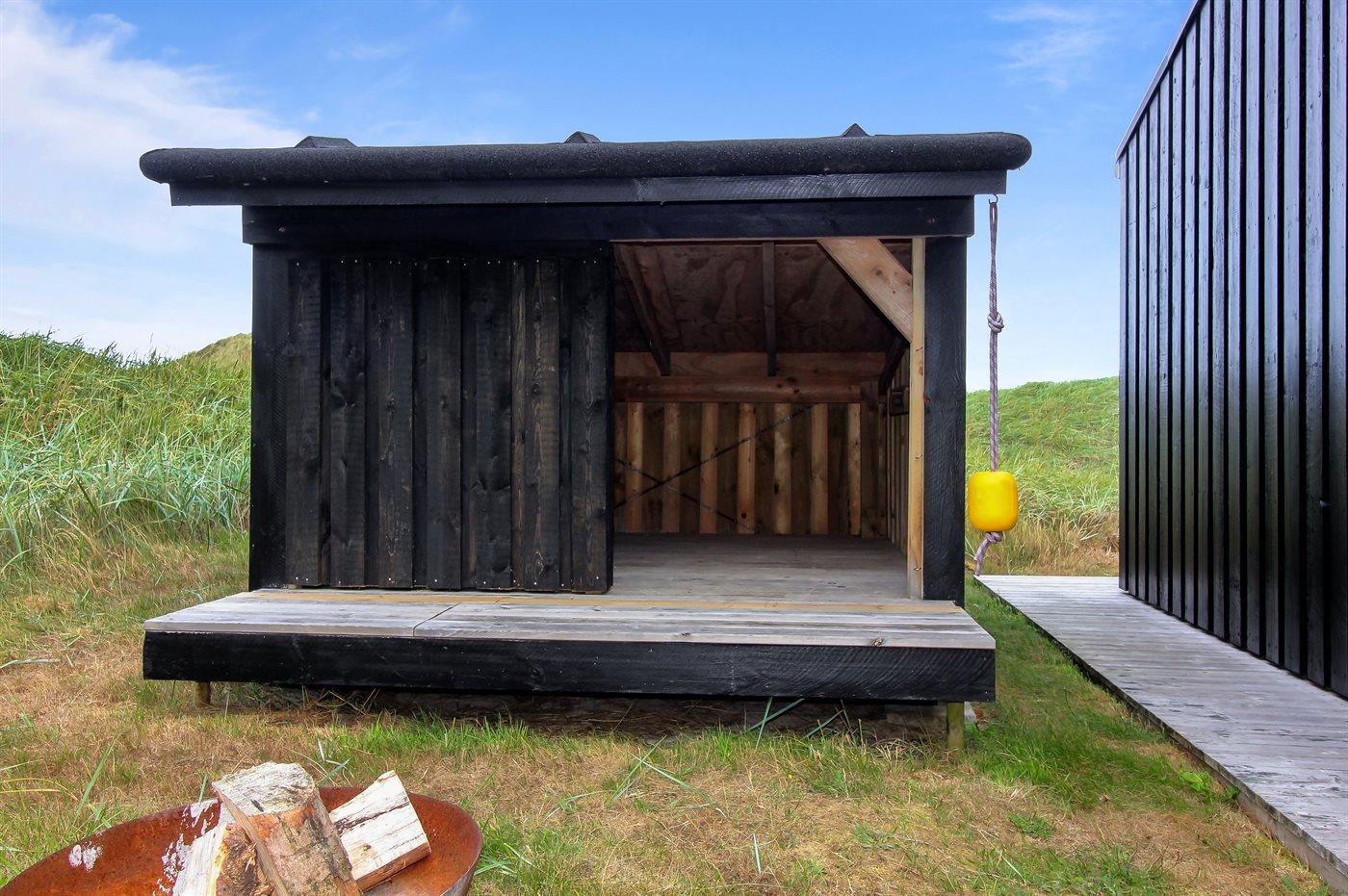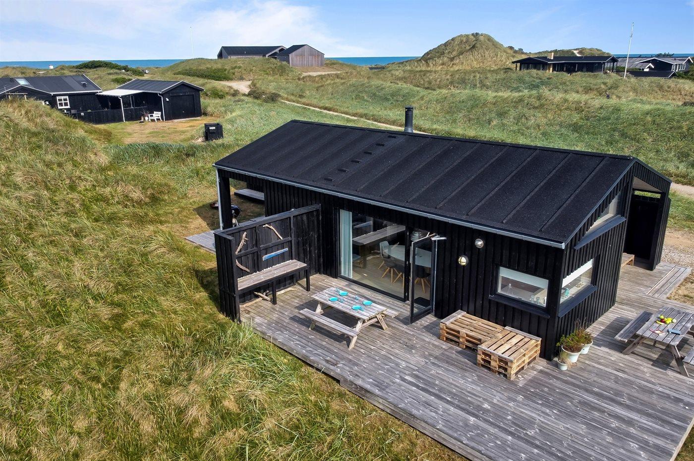 Helt nybygget sommerhus beliggende på en kuperet grund, på en lukket vej, i klitterne til Vesterhavet. På grunden står et shelter til rådighed.