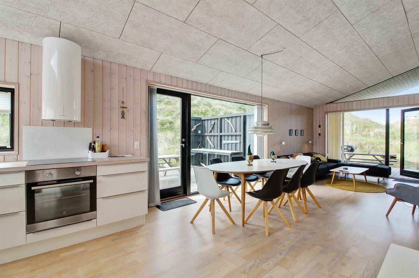 Køkkenet er udstyret med 1 køleskab. Der er 4 induktionskogeplader, bageovn samt opvaskemaskine.
