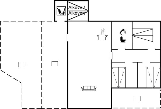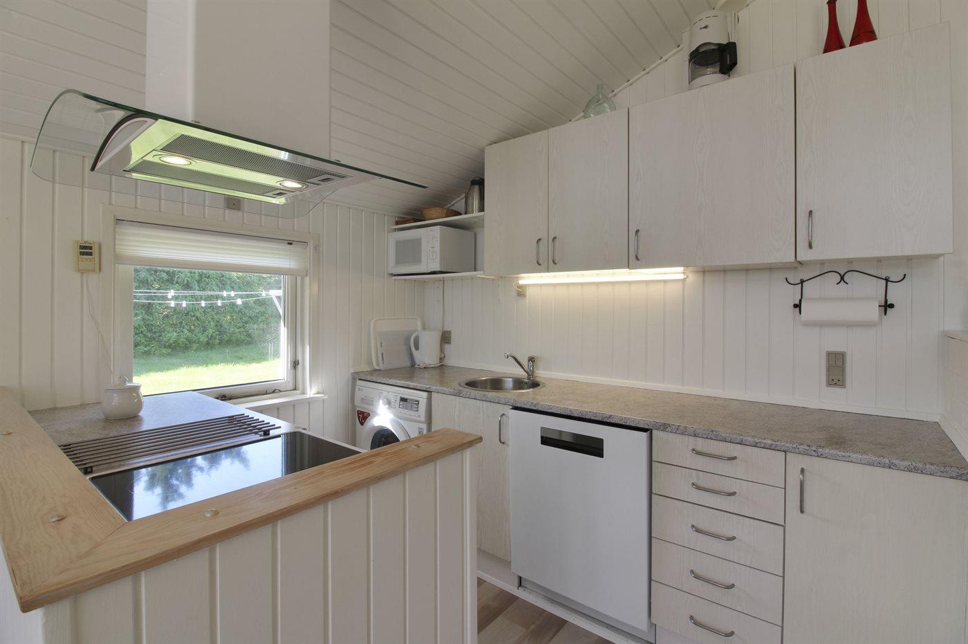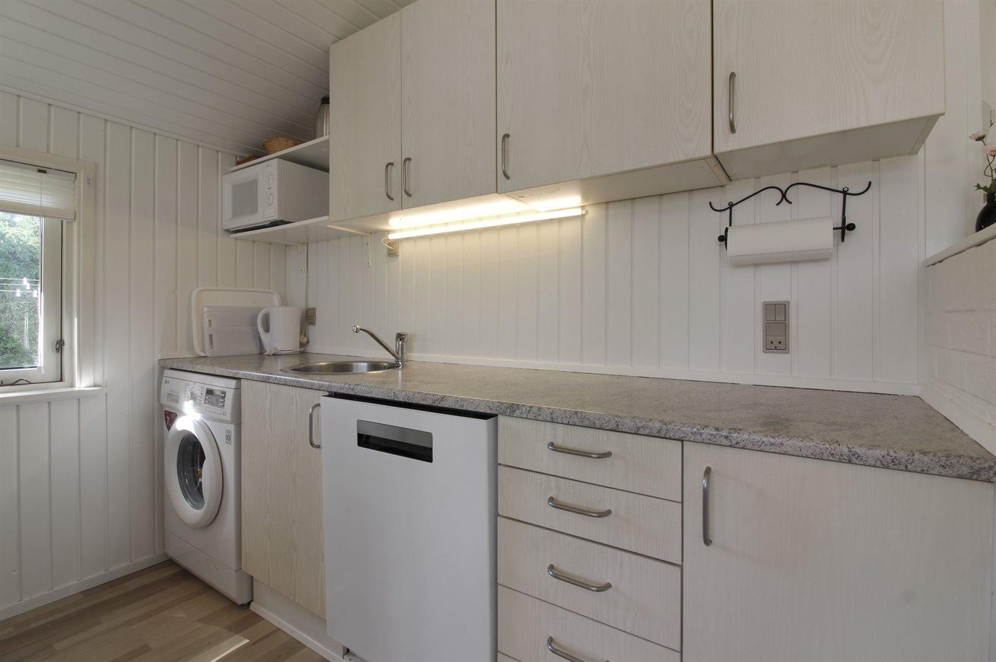 Køkkenet er udstyret med 1 køleskab. Der er 4 keramiske kogeplader, bageovn, mikrobølgeovn samt opvaskemaskine.
