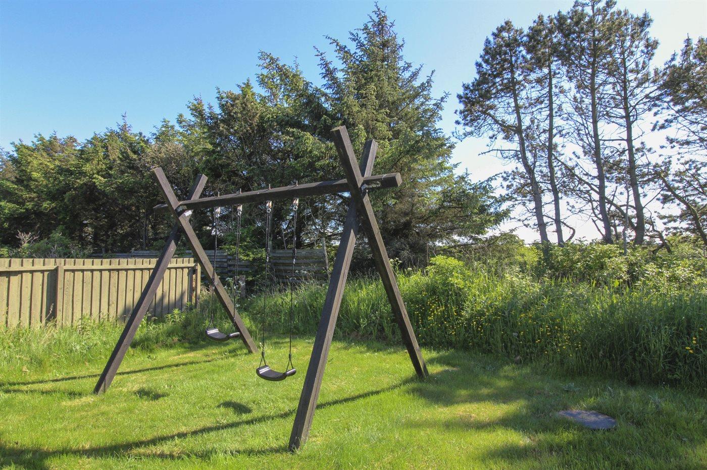 Ferieboligen er beliggende på en 1163 m² stor naturgrund. Der er 800 m til havet. Nærmeste forretning er beliggende i en afstand af 400 m. Til ferieboligen hører 28 m² terrasseareal. Desuden er der 15 m² overdækket terrasse. Der er redskabsrum. Gynge.