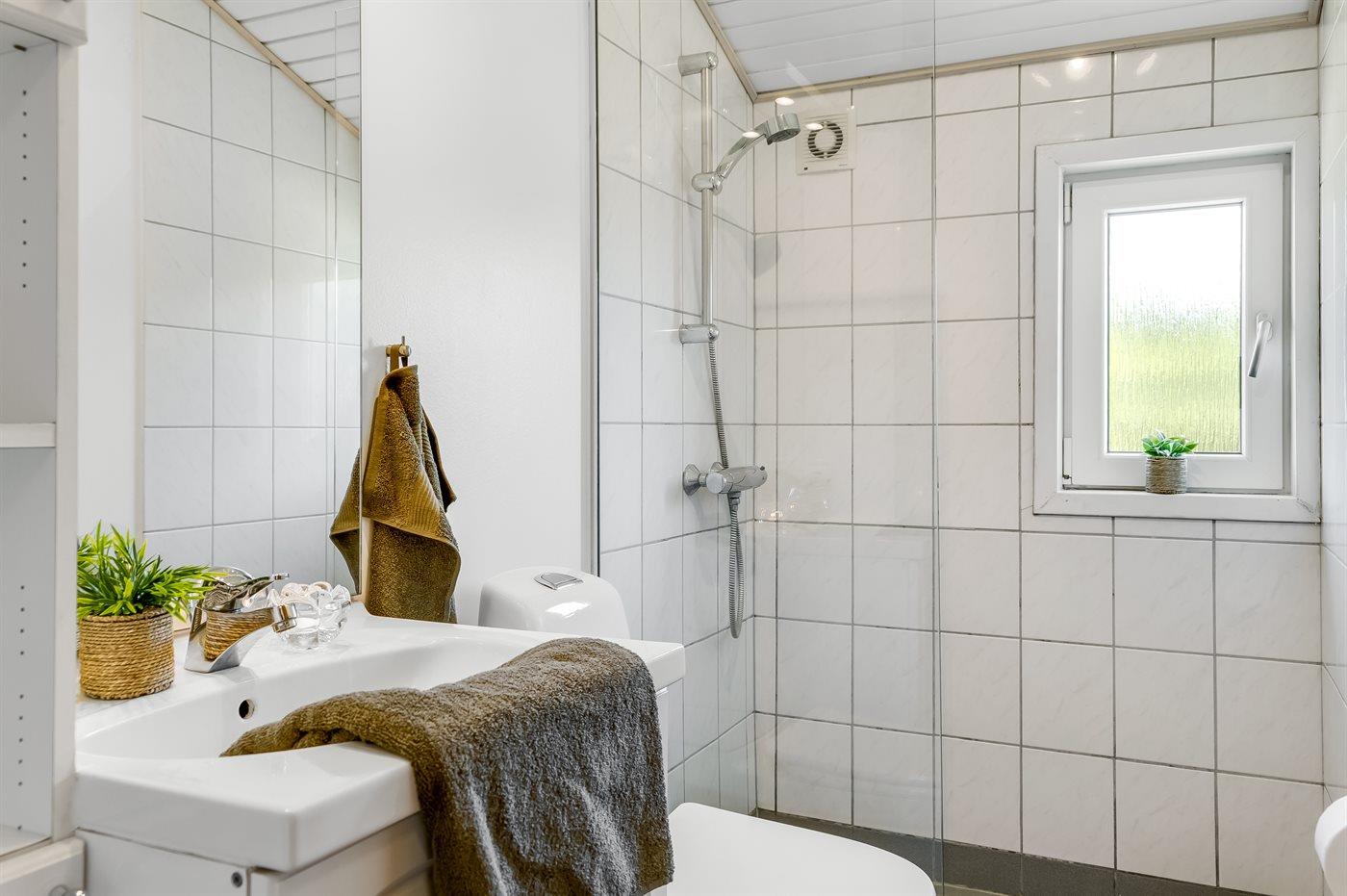 Der er 1 badeværelse med bruseniche og 1 toilet.. Der er gulvvarme på 1 badeværelse.