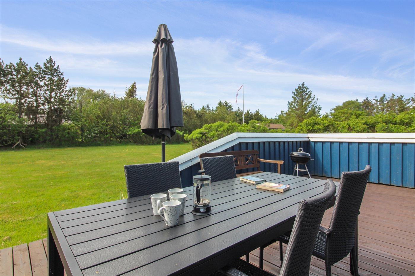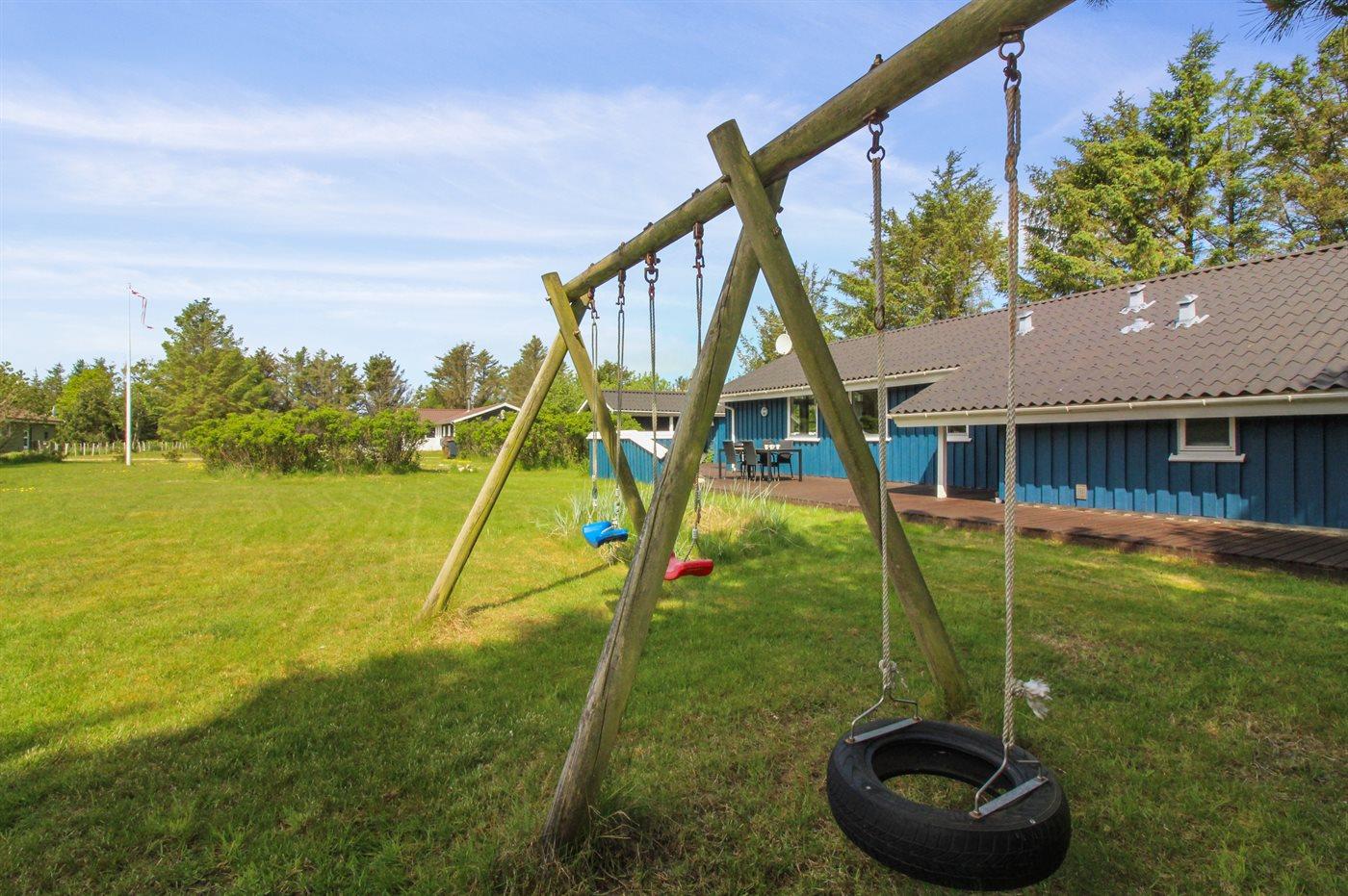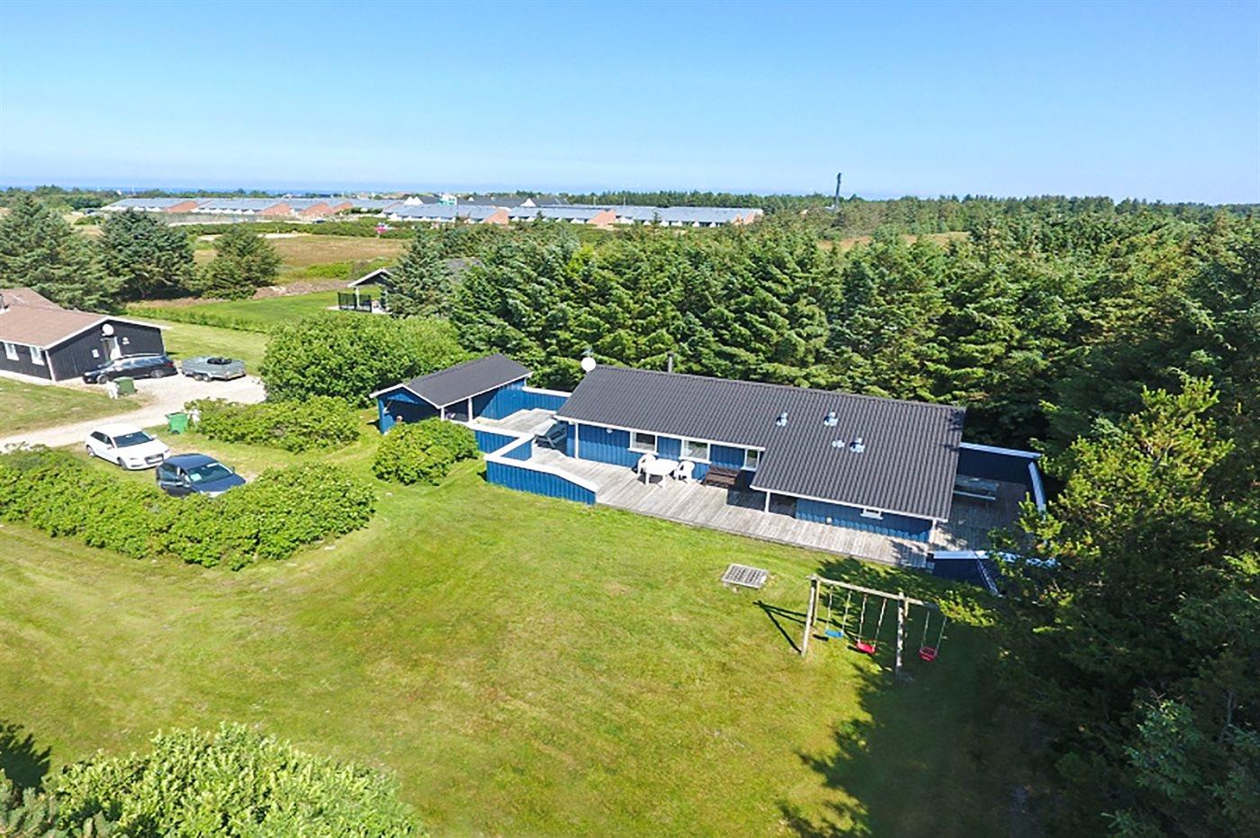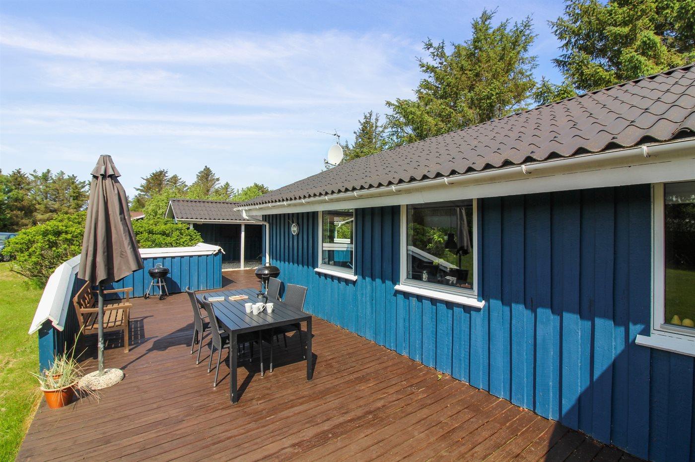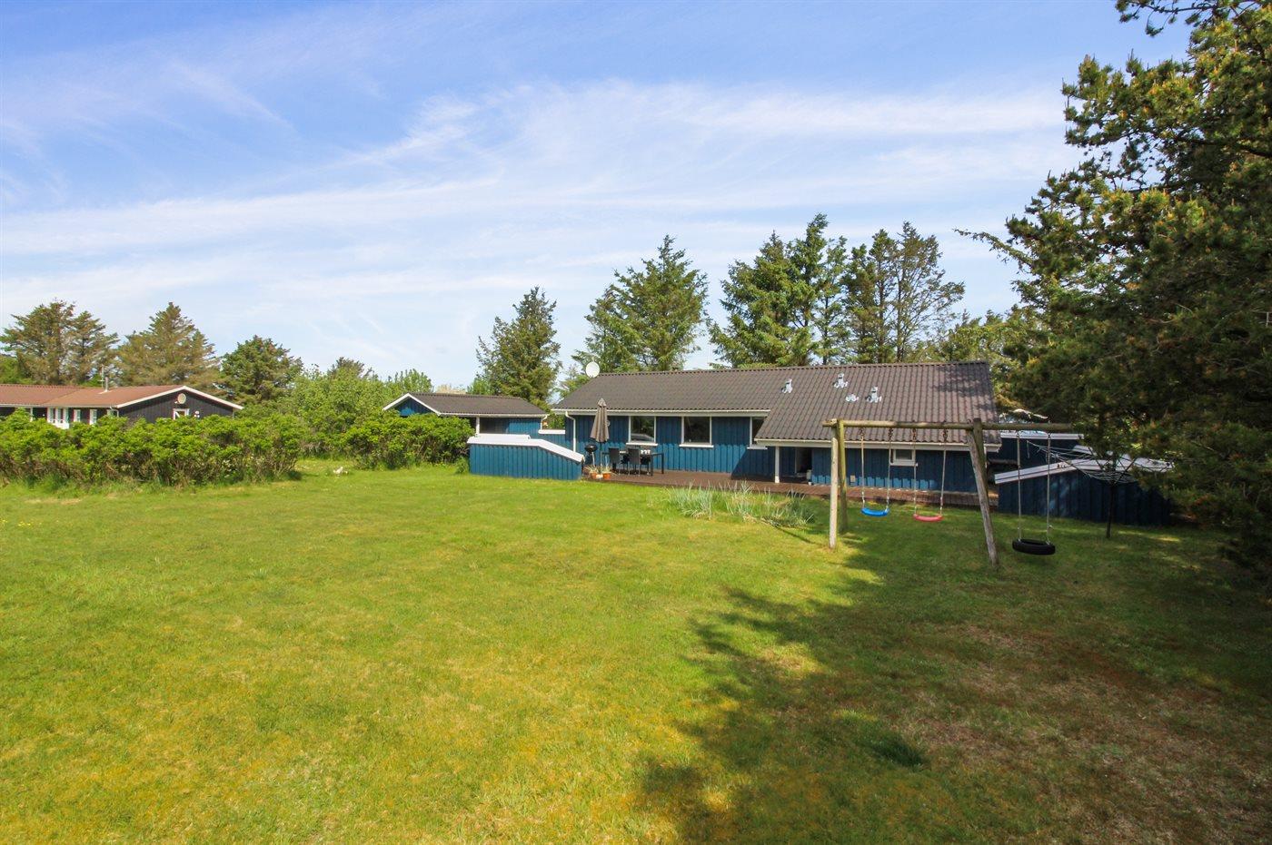 Ferieboligen er beliggende på en 1400 m² stor naturgrund. Der er 600 m til havet. Nærmeste forretning er beliggende i en afstand af 200 m. Til ferieboligen hører 100 m² terrasseareal. Der er redskabsrum. Gynge. Der er carport til rådighed. Parkering ved ferieboligen.