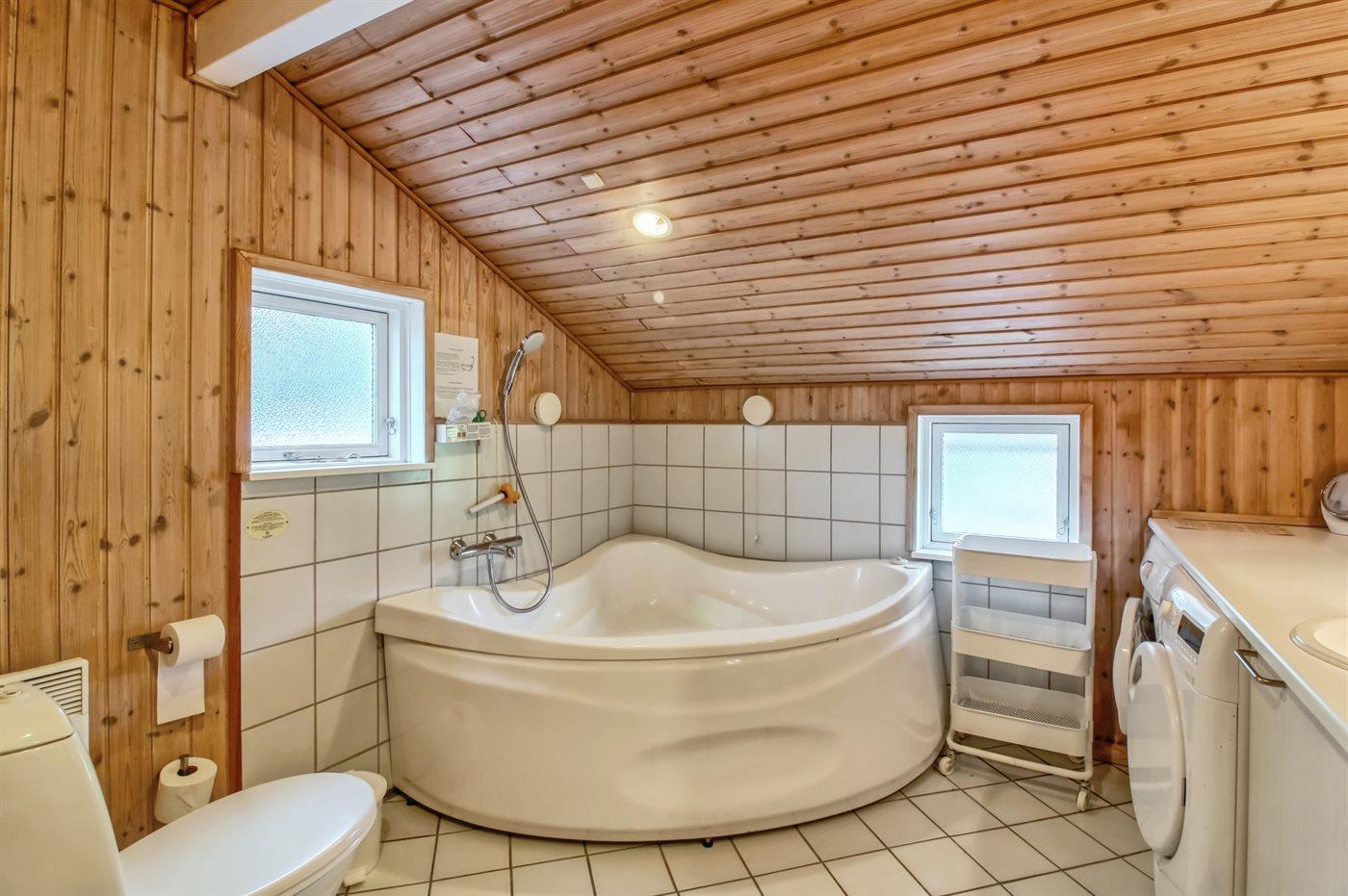 Der er 1 badeværelse med bruseniche og 2 toiletter, heraf 1 gæstetoilet. Der er gulvvarme på 1 badeværelse. Der er gulvvarme på gæstetoilettet. I saunaen er der mulighed for afslapning.