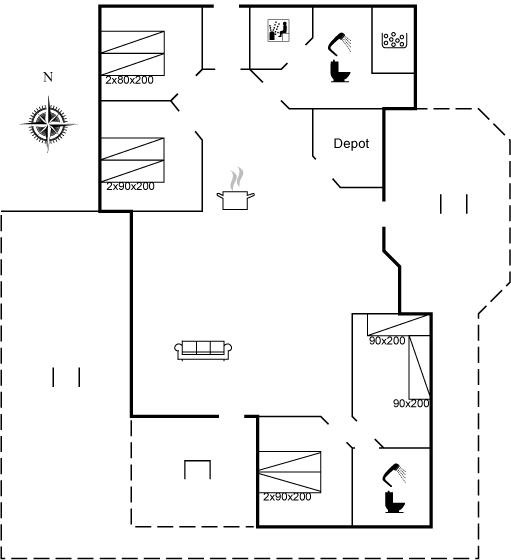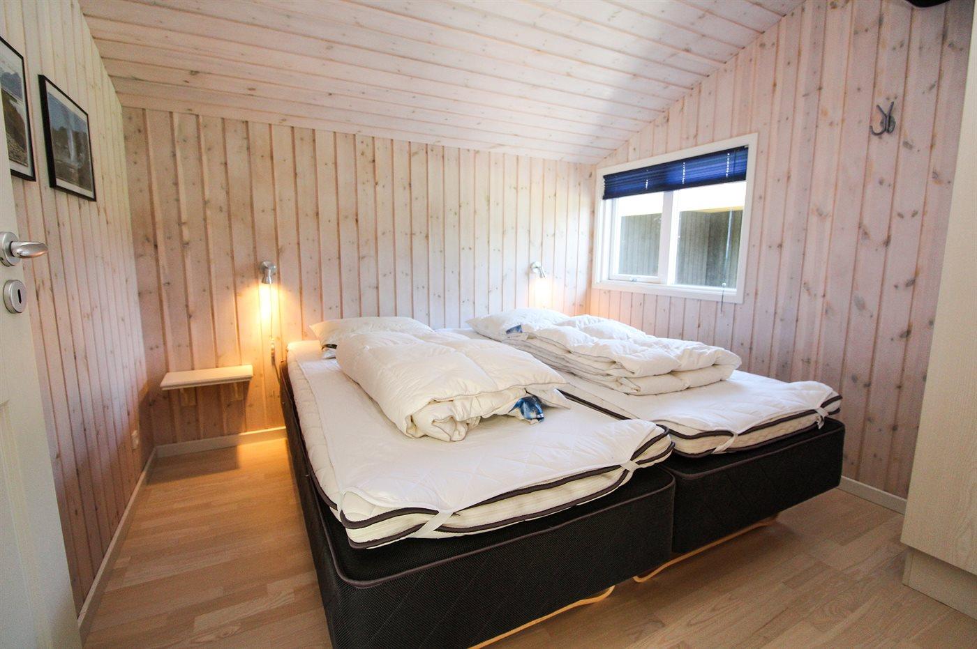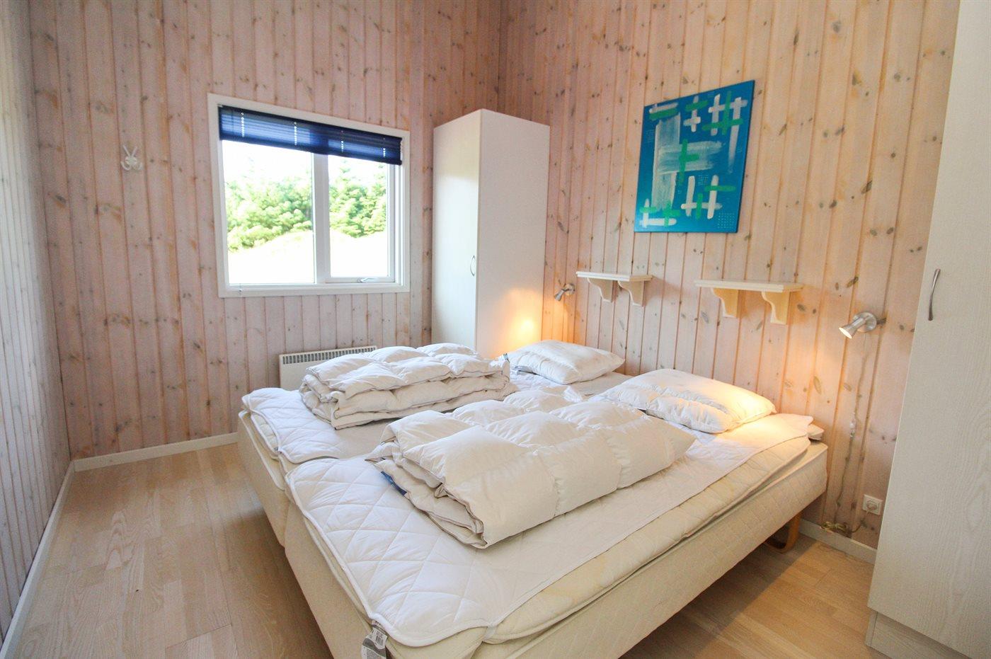 Der er i alt 4 soveværelser. Sovepladserne fordeler sig på: 6 sovepladser i dobbeltsenge. 2 sovepladser i enkeltsenge. Derudover er der 1 stk. barneseng.