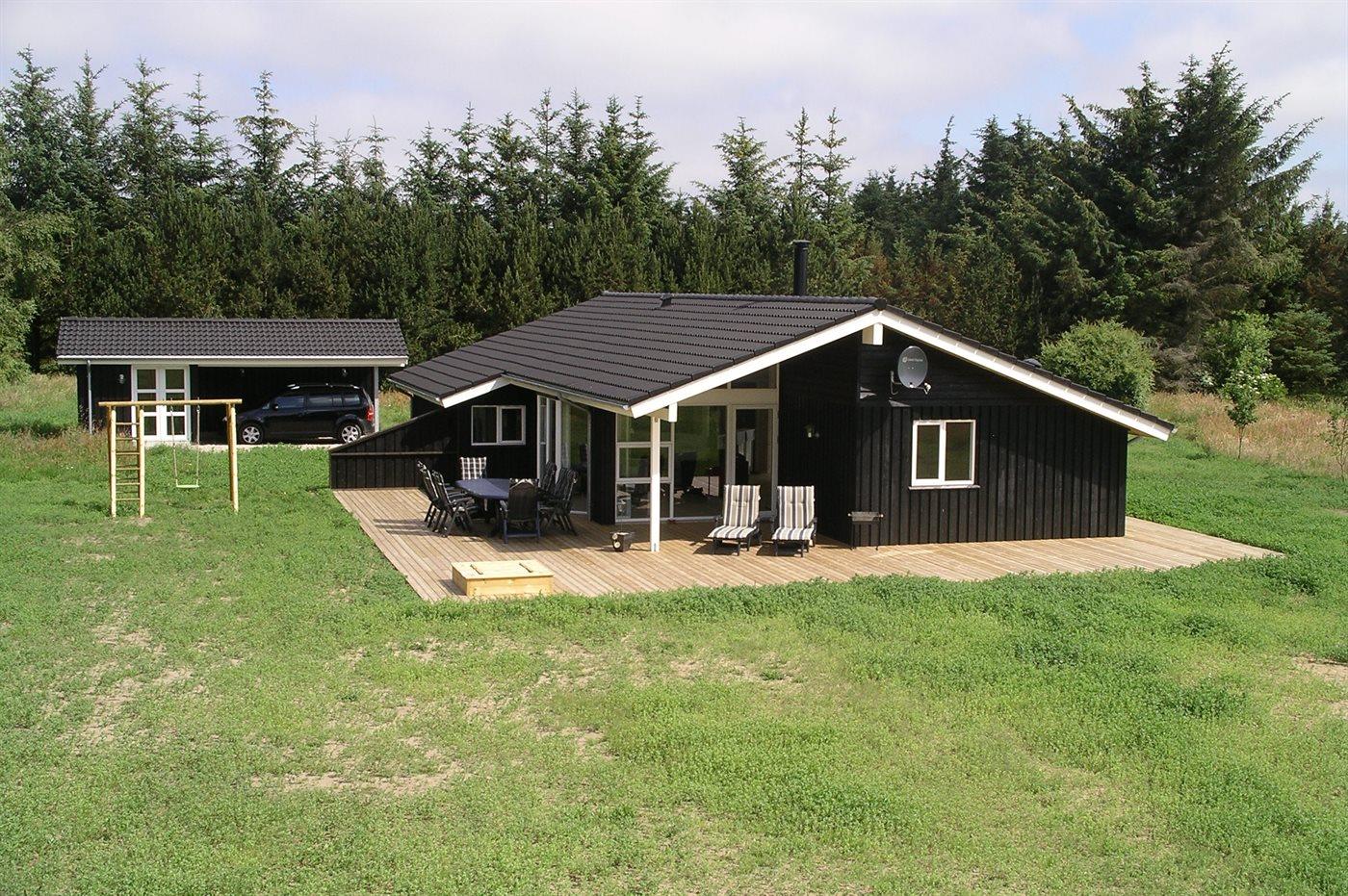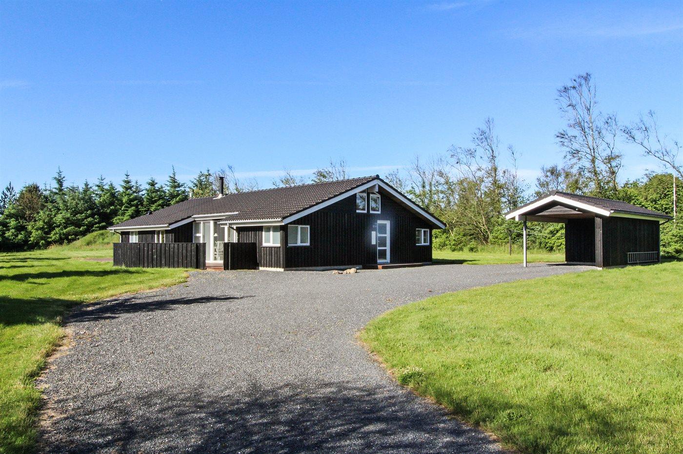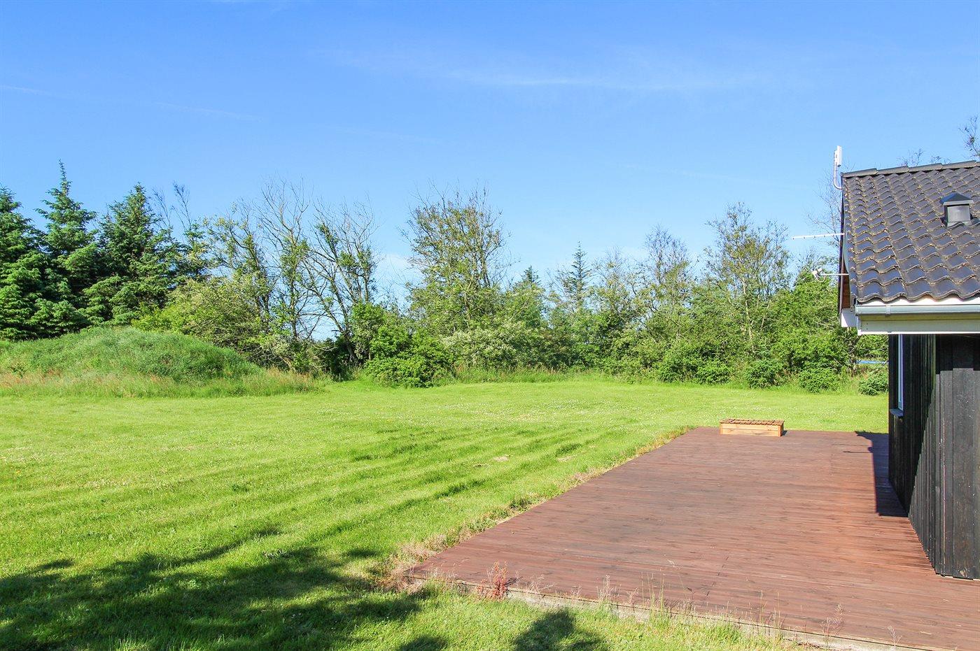 Ferieboligen er beliggende på en 5300 m² stor naturgrund. Der er 1400 m til havet. Nærmeste forretning er beliggende i en afstand af 2000 m. Til ferieboligen hører 125 m² terrasseareal. Desuden er der 18 m² overdækket terrasse. Gynge. Sandkasse. Der er carport til rådighed.