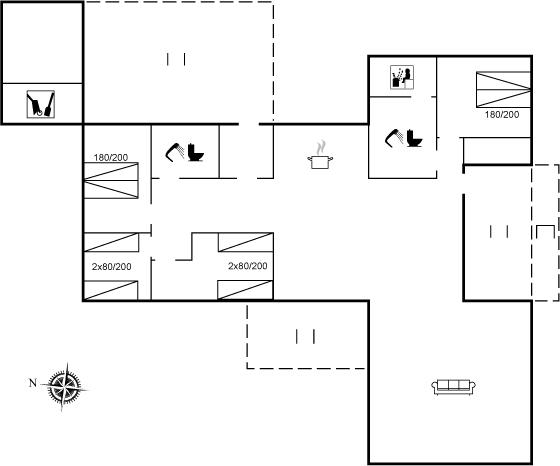 Der er i alt 4 soveværelser. Sovepladserne fordeler sig på: 4 sovepladser i dobbeltsenge. 4 sovepladser i enkeltsenge. Derudover er der 1 stk. barneseng. Der er gulvvarme i et af soveværelserne.