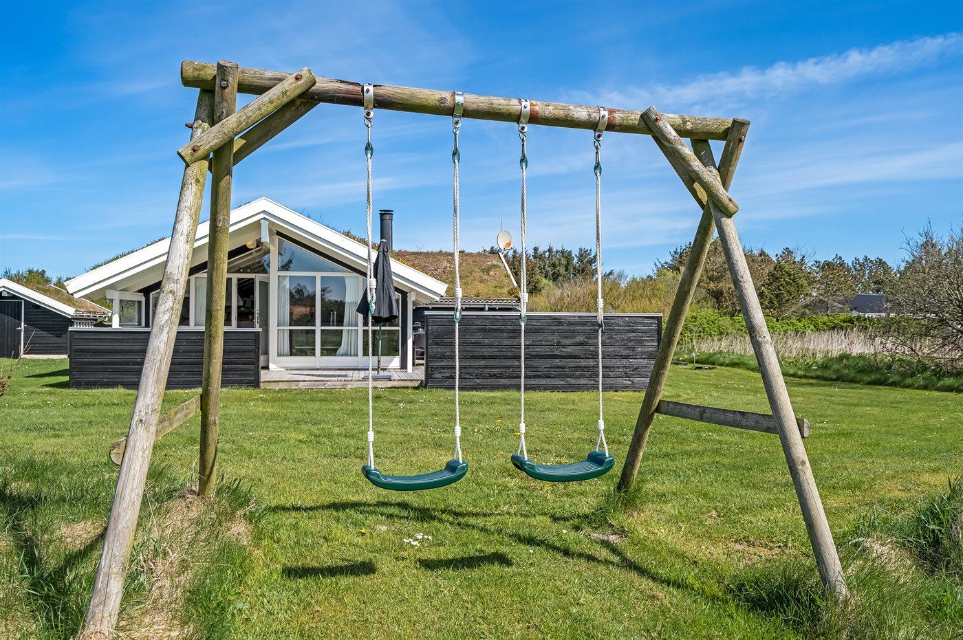 Skønt sommerhus i naturskønt område nær Vesterhavet med spa, sauna og stor grund til leg og afslapning.