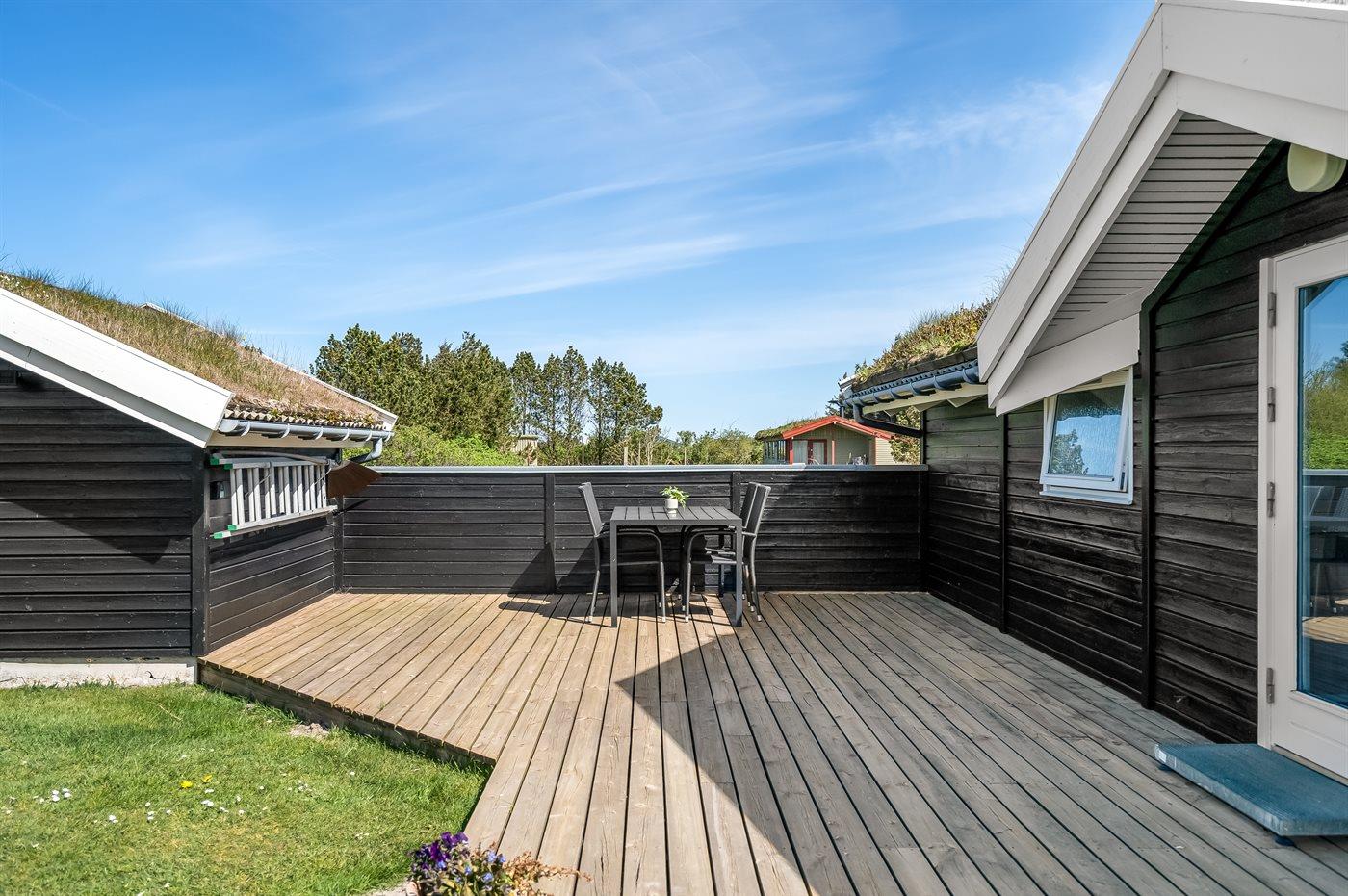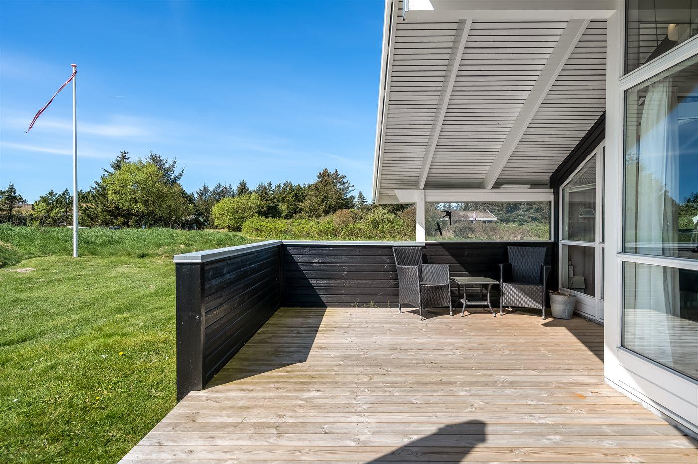 Skønt sommerhus beliggende på en lukket vej på en stor grund med plads til boldspil og leg i et naturskønt område nær stranden og Vesterhavet. Vaskemaskine og tørretumbler er kombineret.