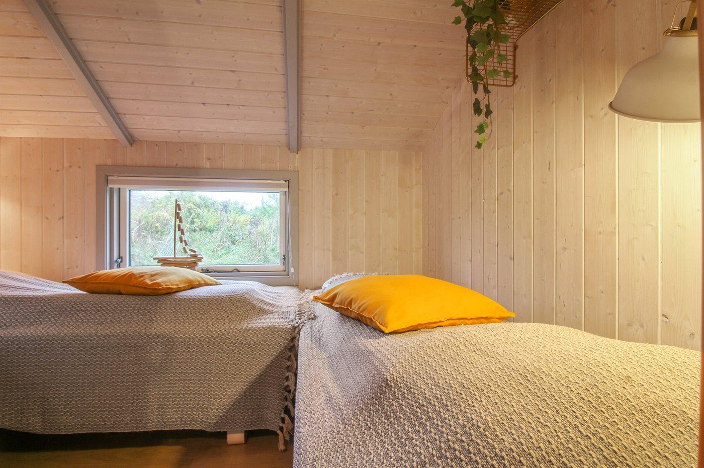 Der er i alt 4 soveværelser. Sovepladserne fordeler sig på: 4 sovepladser i dobbeltsenge. 4 sovepladser i enkeltsenge. Derudover er der 1 stk. barneseng.