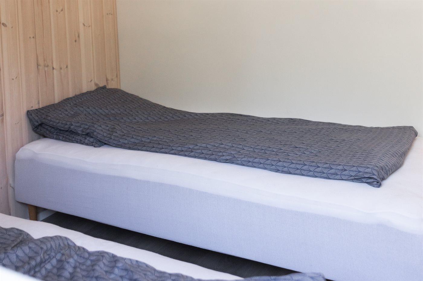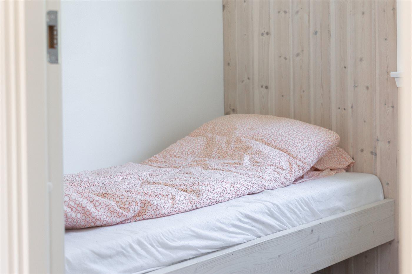 Der er i alt 4 soveværelser. Sovepladserne fordeler sig på: 4 sovepladser i dobbeltsenge. 3 sovepladser i enkeltsenge.