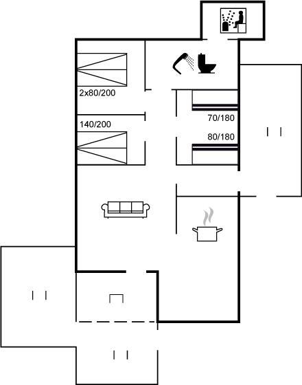 Der er i alt 3 soveværelser. Sovepladserne fordeler sig på: 4 sovepladser i dobbeltsenge. 4 sovepladser i køjesenge.