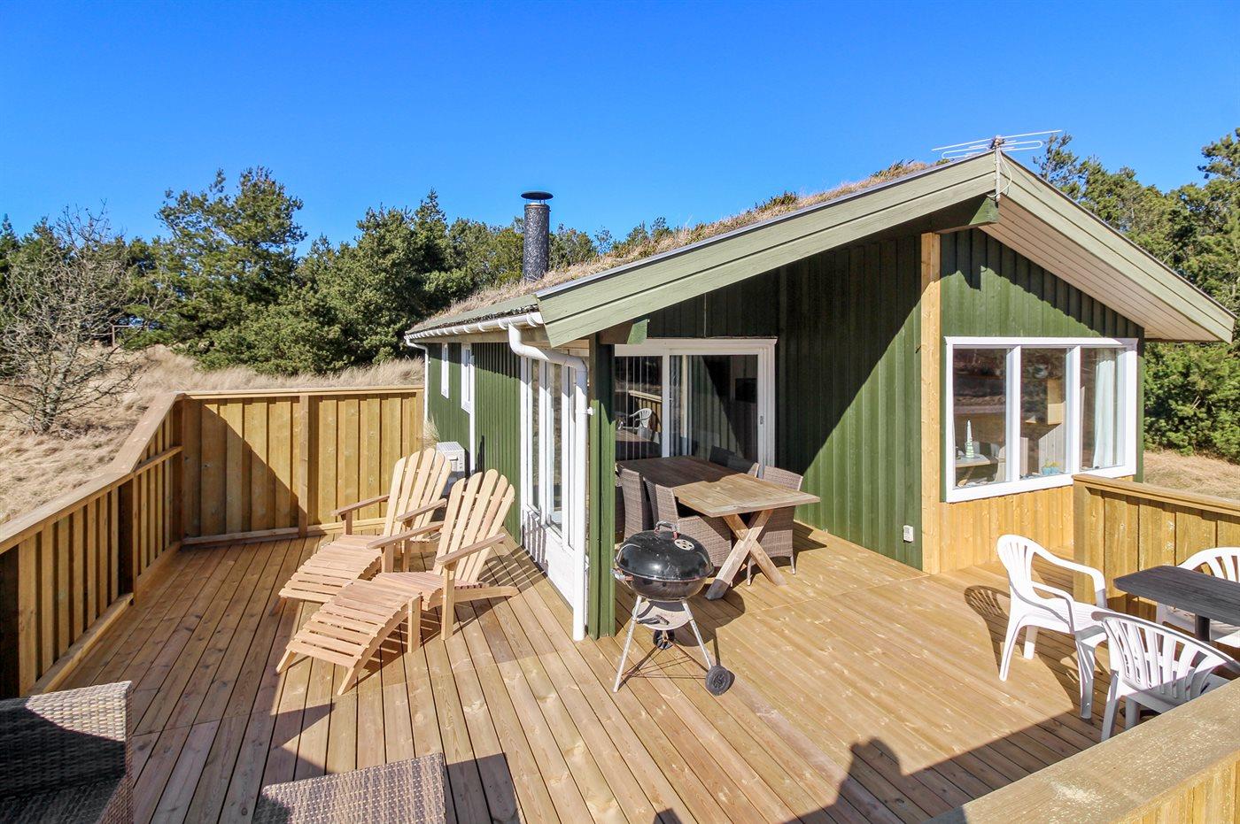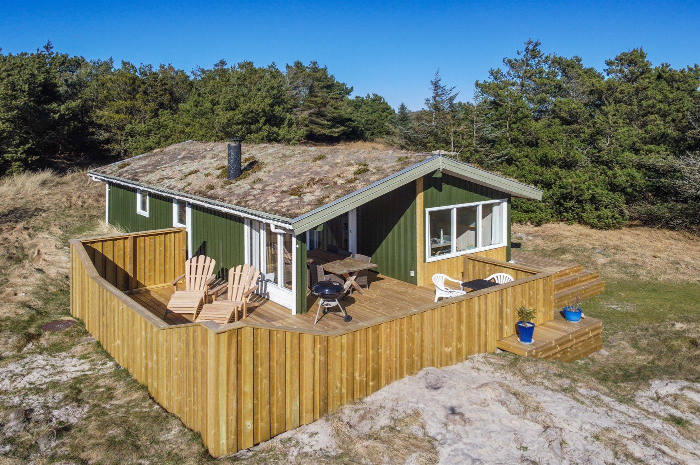 På en kuperet grund, på en lukket vej, ligger dette skønne sommerhus i et naturskønt klitlandskab nær stranden og Vesterhavet.
