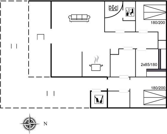 Der er i alt 3 soveværelser. Sovepladserne fordeler sig på: 4 sovepladser i dobbeltsenge. 4 sovepladser i køjesenge.