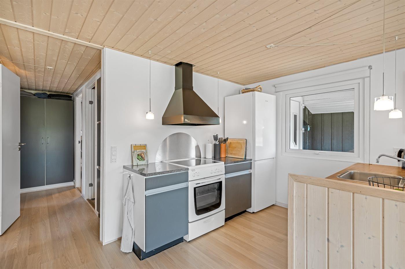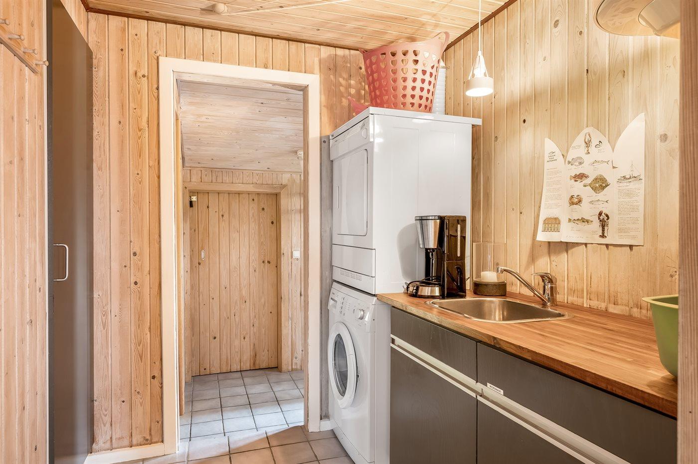 Køkkenet er udstyret med 1 køleskab. Der er 4 keramiske kogeplader, varmluftovn, mikrobølgeovn samt opvaskemaskine.