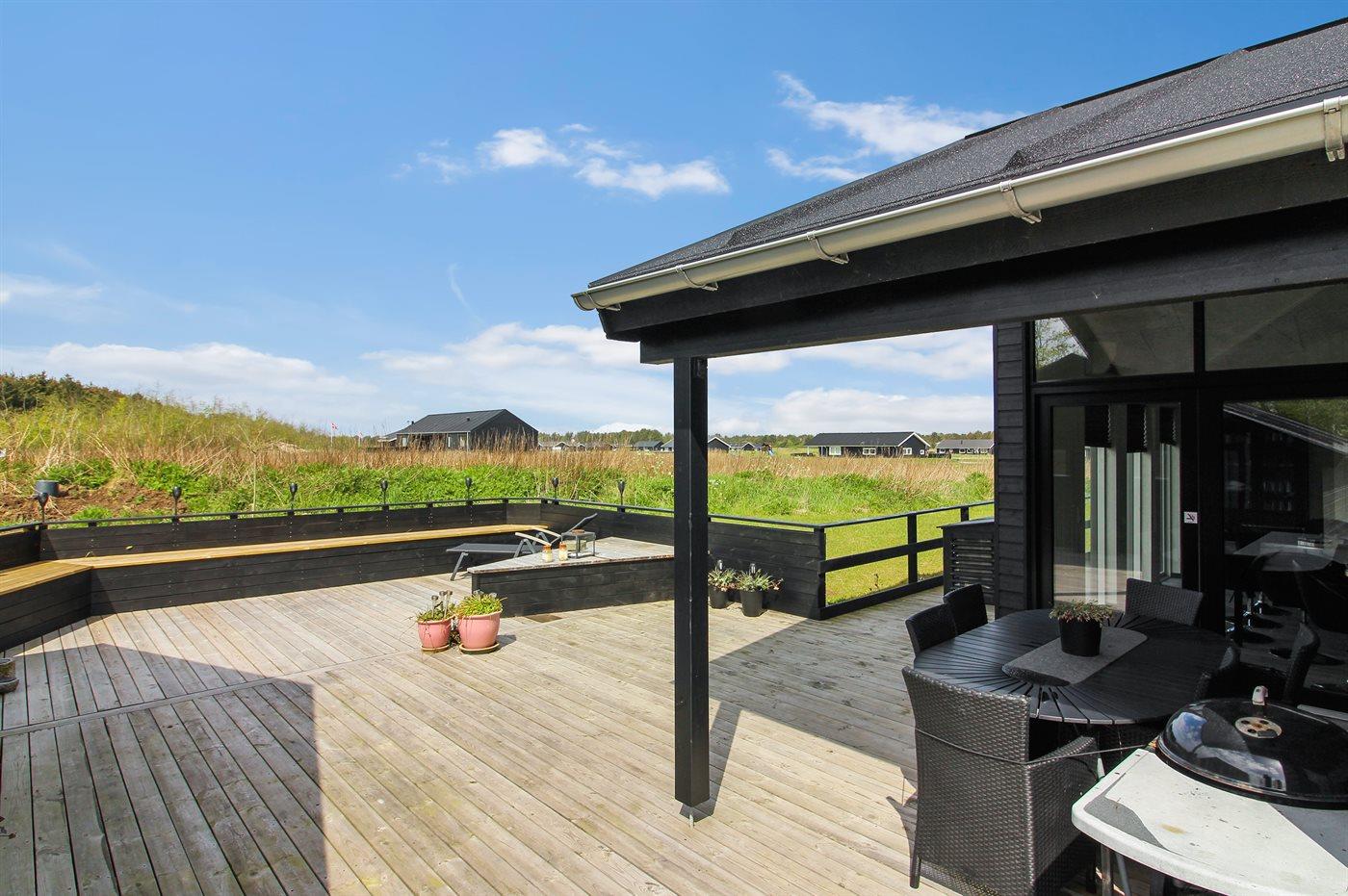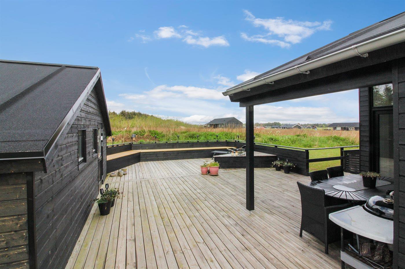 Helt nyt, flot og rummeligt sommerhus beliggende på en meget stor åben grund i et nyt sommerhusområde under opførelse. Området ligger i kort afstand til Vesterhavet og dejlig badestrand. Til huset hører gode terrasseforhold med gode læmuligheder. Ligeledes findes sandbane på grunden, som kan anvendes til flere forskellige udendørs aktiviteter.