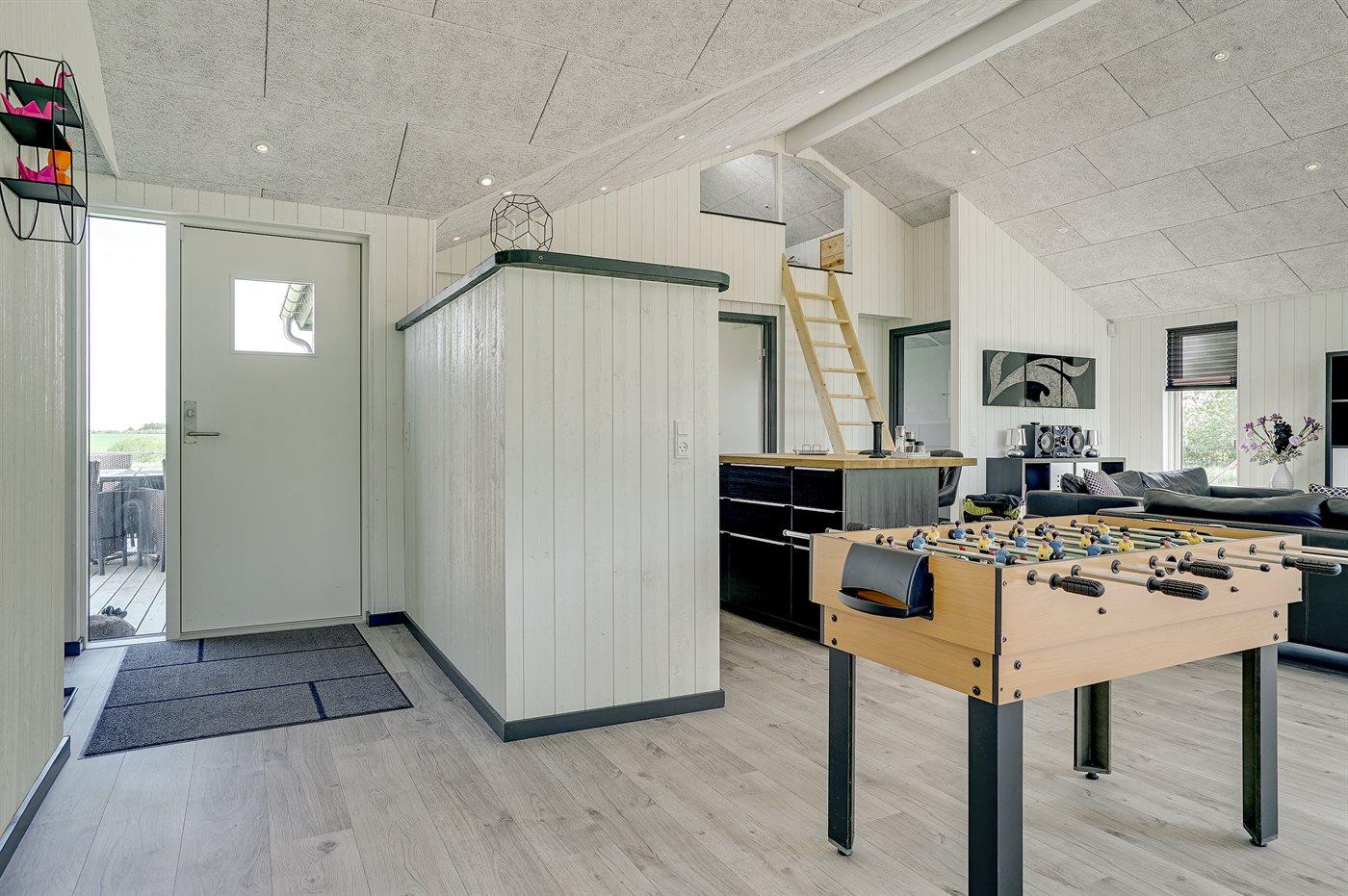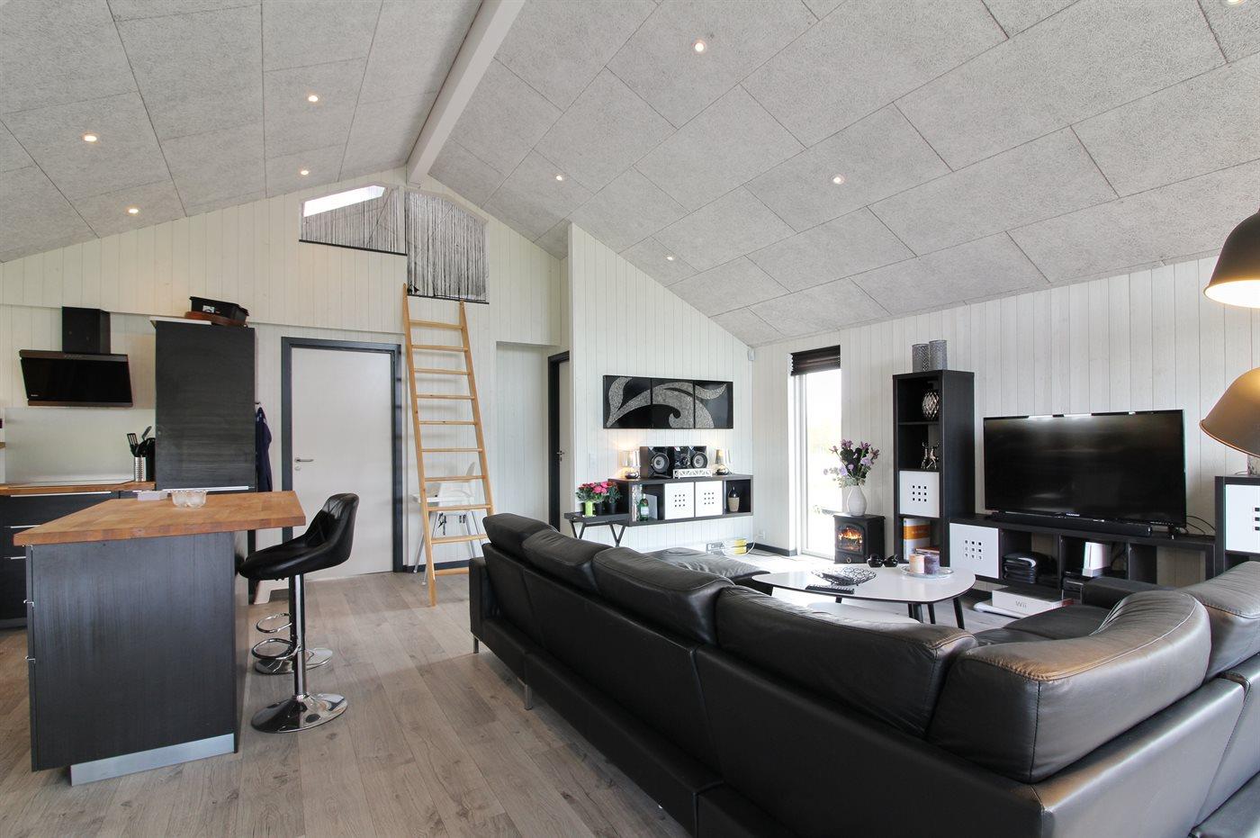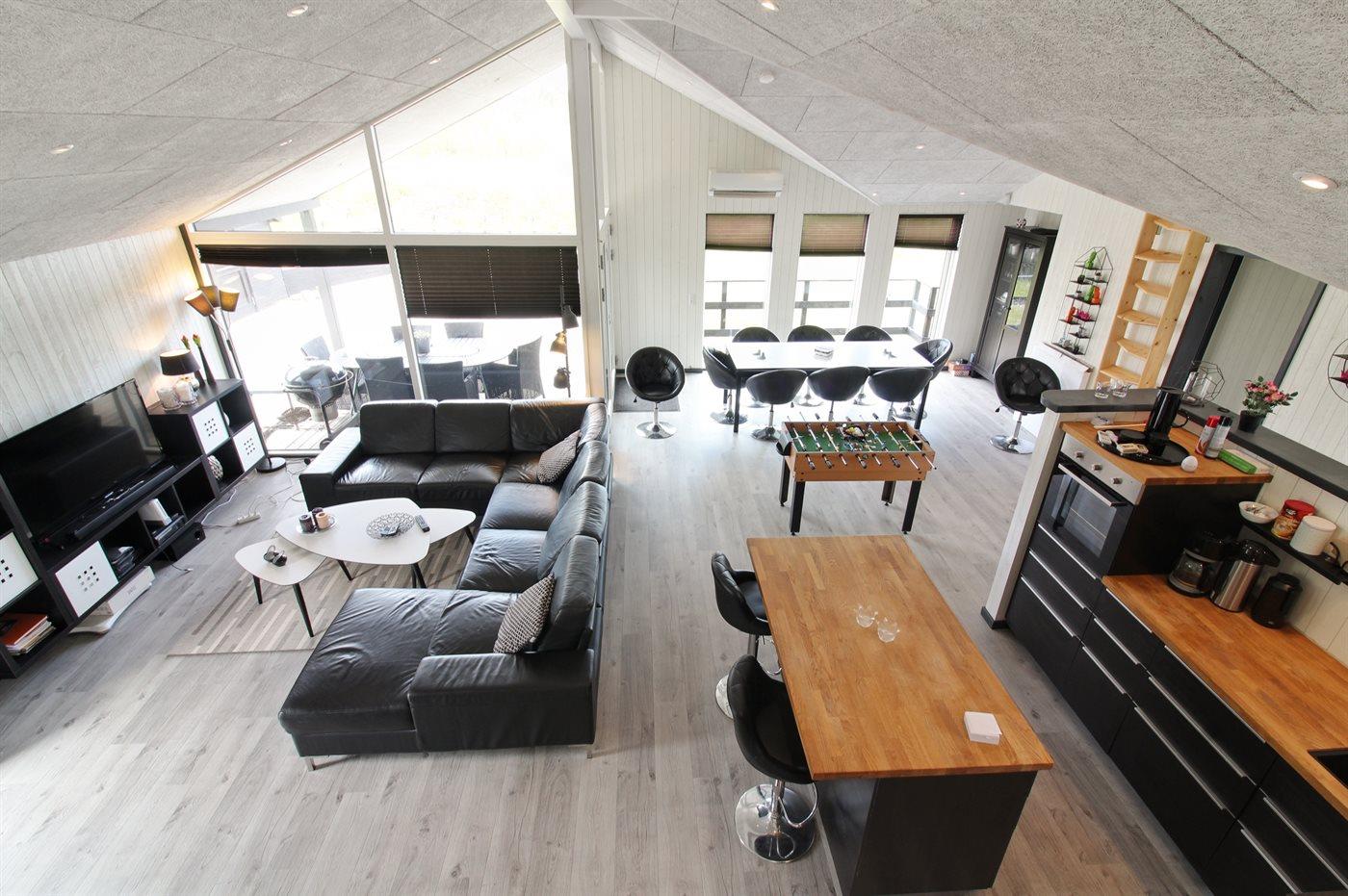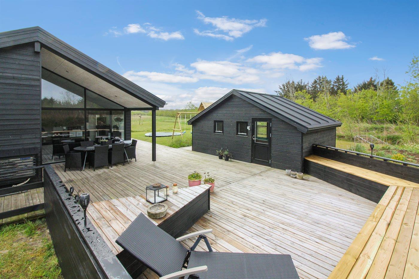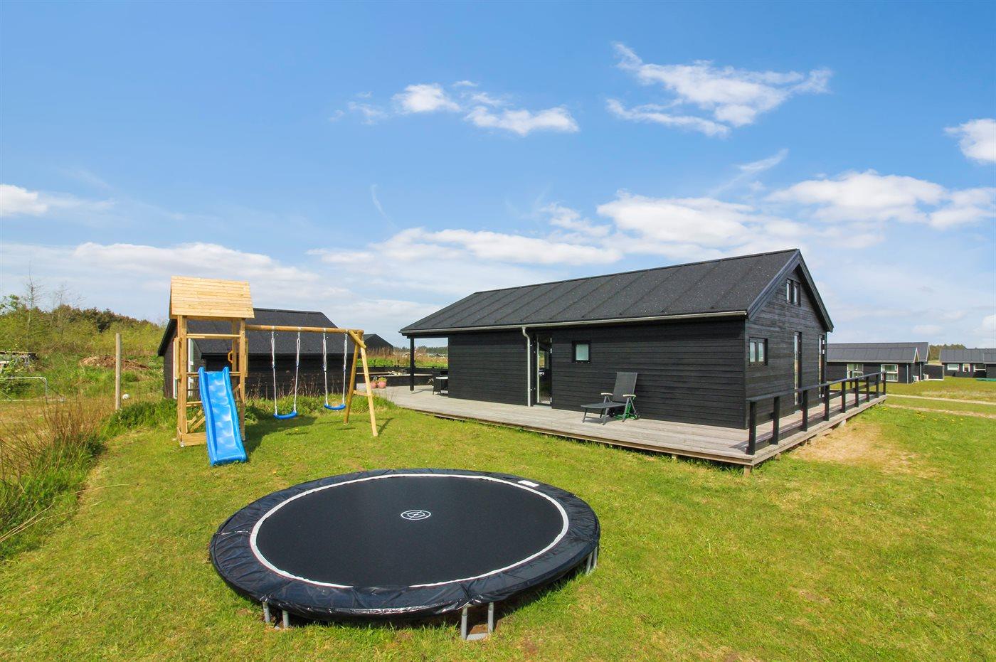 Nyt og rummeligt sommerhus nær Vesterhavet med sauna, spa og stort aktivitetsrum på stor naturgrund.