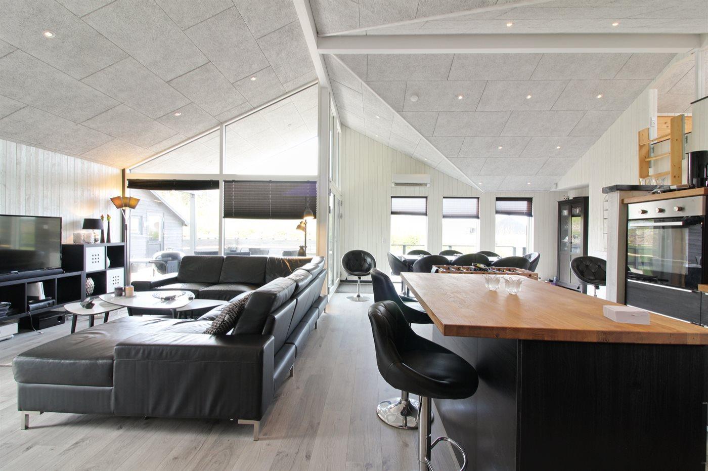 Køkkenet er udstyret med 1 køleskab. Der er 4 induktionskogeplader, varmluftovn, mikrobølgeovn samt opvaskemaskine.