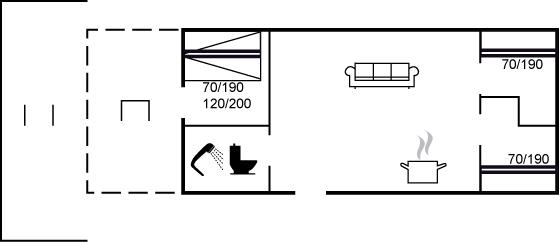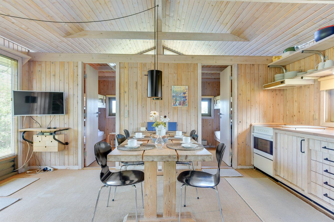 Der er i alt 3 soveværelser. Sovepladserne fordeler sig på: 1 sovepladser i dobbeltsenge. 5 sovepladser i køjesenge.