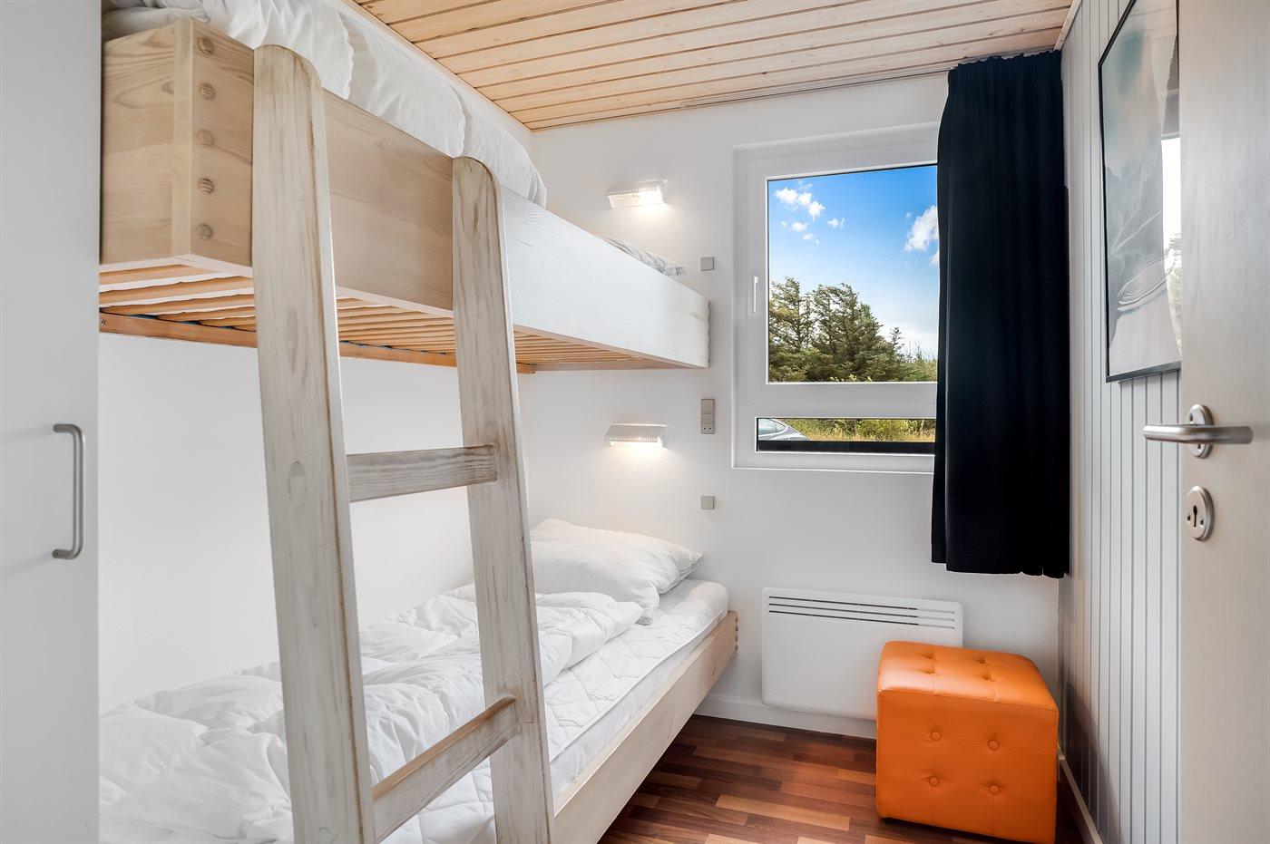 Der er i alt 4 soveværelser. Sovepladserne fordeler sig på: 4 sovepladser i dobbeltsenge. 4 sovepladser i køjesenge. Derudover er der 1 stk. barneseng.