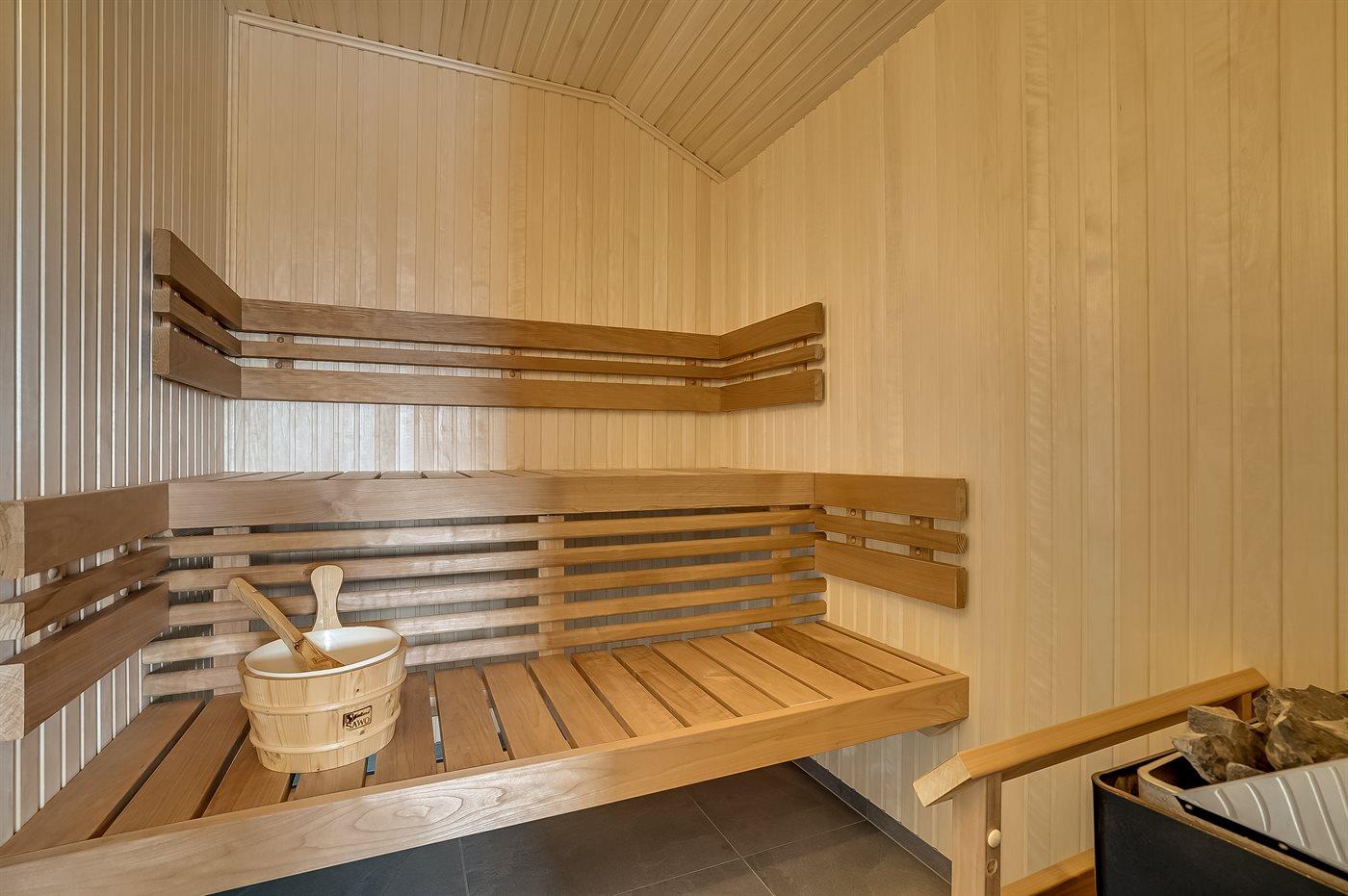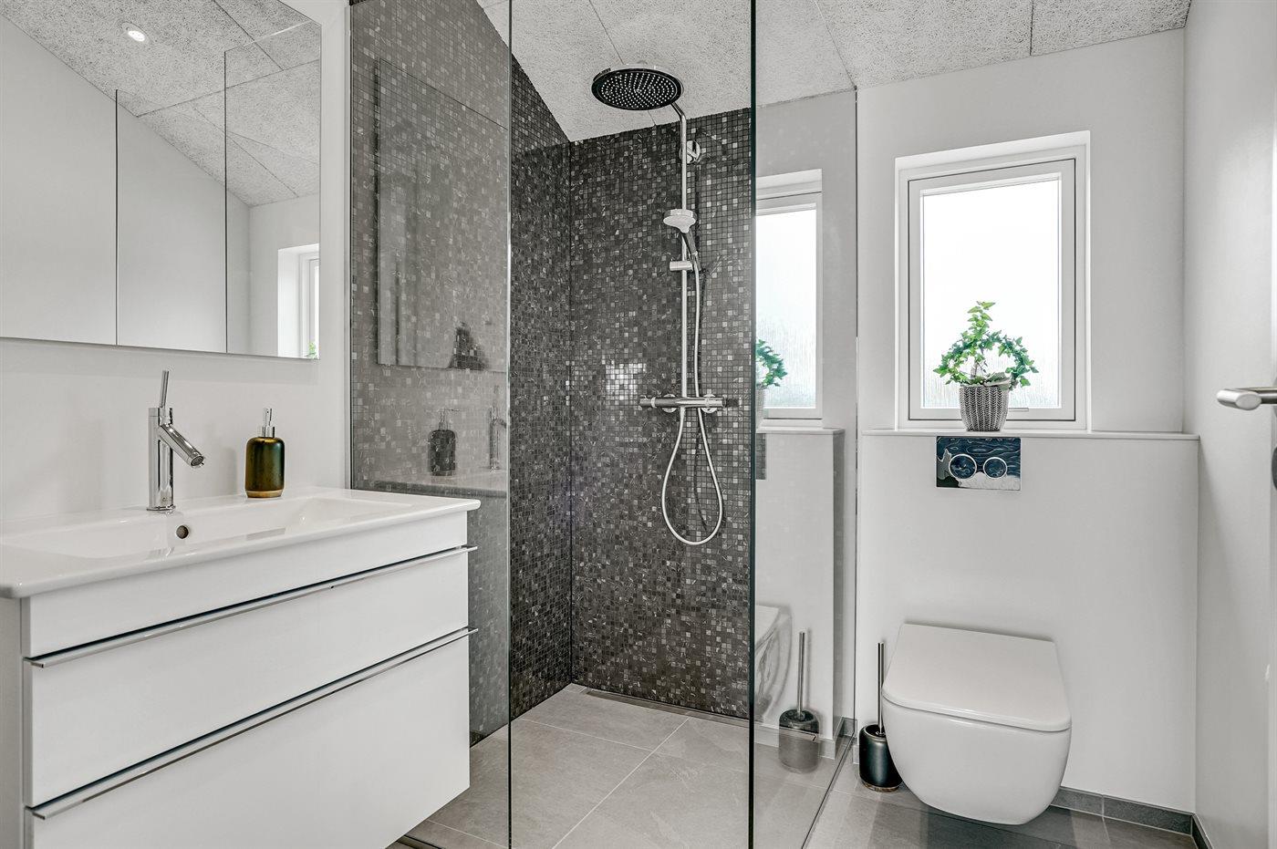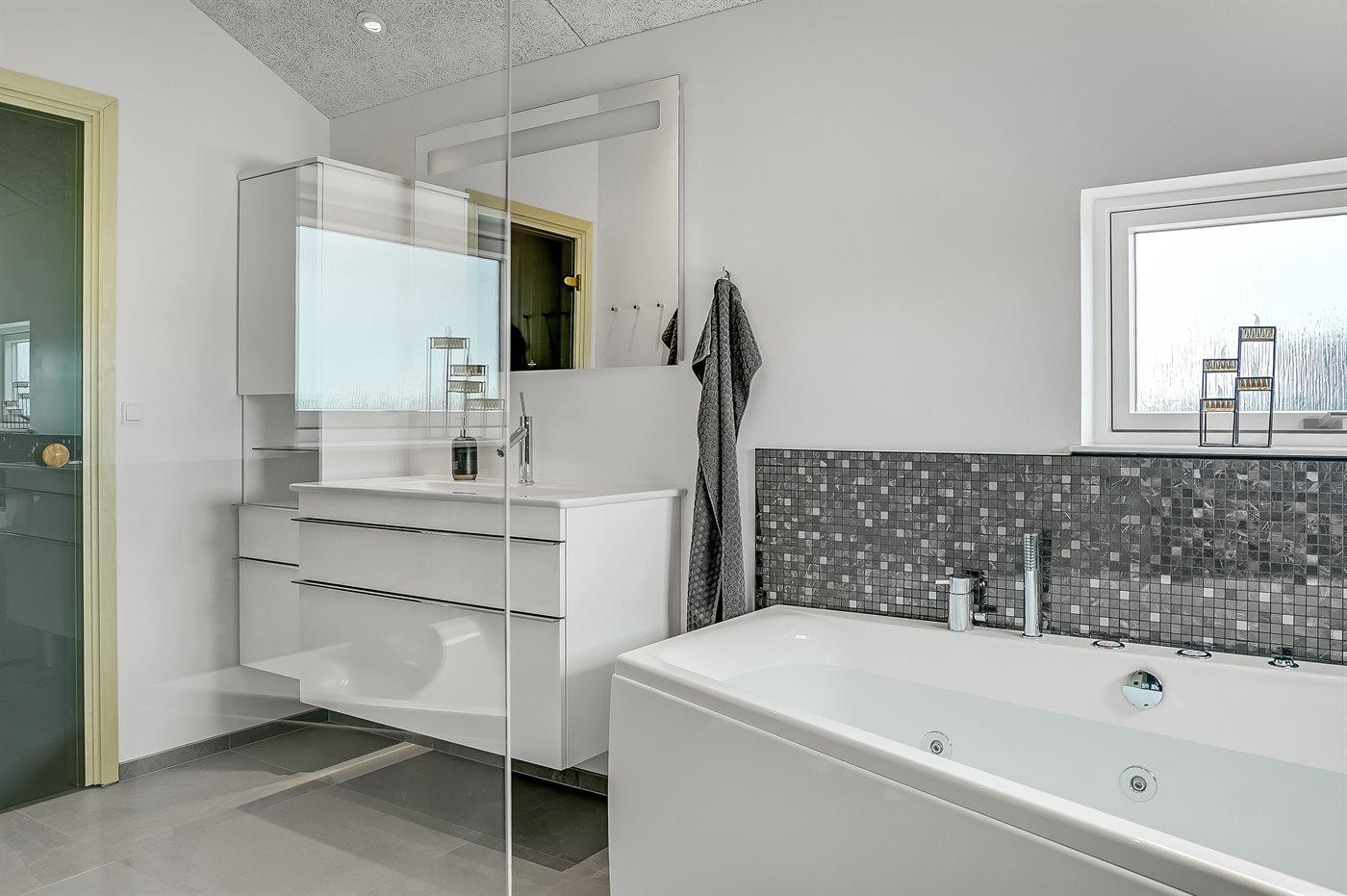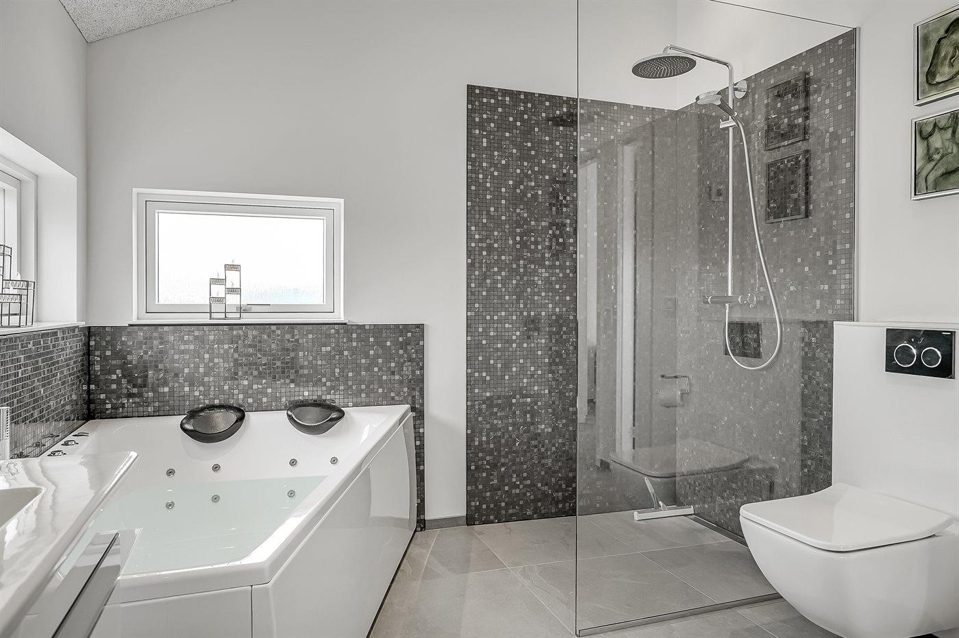 Der er 3 badeværelser med bruseniche og 3 toiletter. Der er gulvvarme på 3 badeværelser. I saunaen er der mulighed for afslapning.