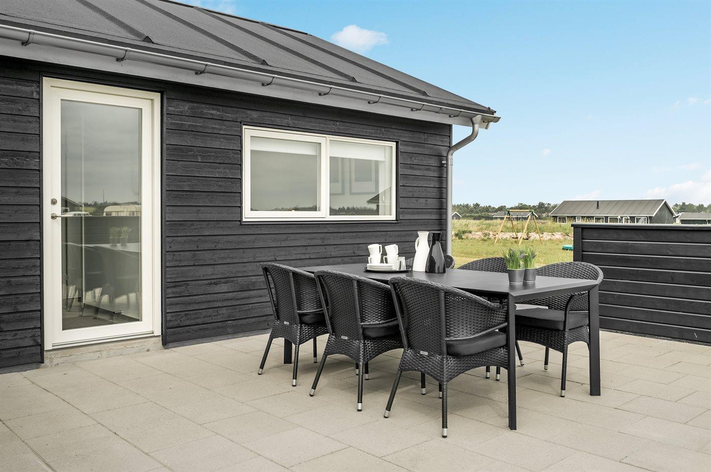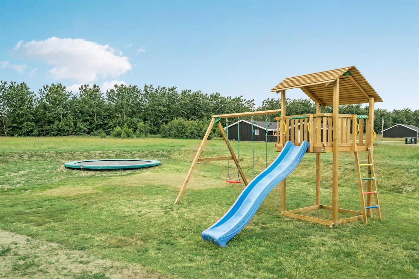 Ferieboligen er beliggende på en 2102 m² stor naturgrund. Der er 1500 m til havet. Nærmeste forretning er beliggende i en afstand af 1200 m. Der er en golfbane i en afstand af 5500 m. Til ferieboligen hører 130 m² terrasseareal. Desuden er der 23 m² overdækket terrasse. Udgang til solgård. Gynge. Trampolin. Rutchebane. Parkering ved ferieboligen.