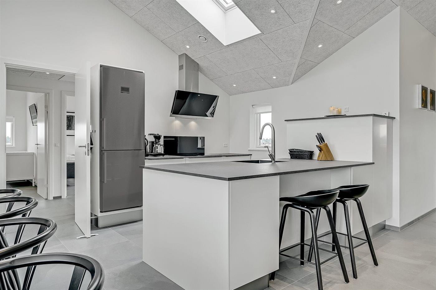 Køkkenet er udstyret med 2 køleskabe. Der er 4 induktionskogeplader, varmluftovn, mikrobølgeovn samt opvaskemaskine.