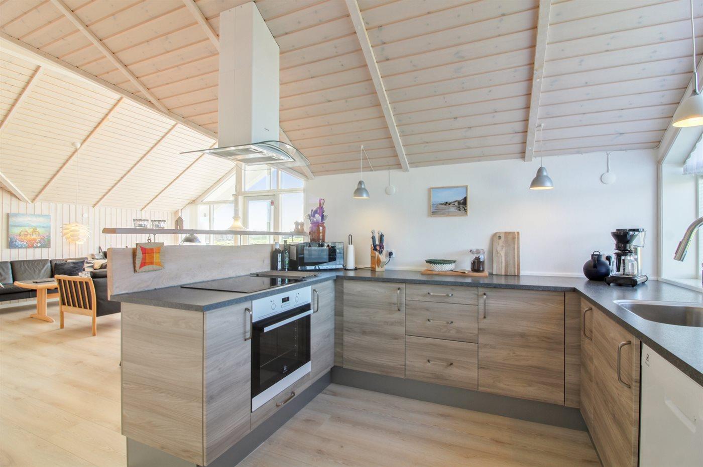 Køkkenet er udstyret med 1 køleskab. Der er 4 induktionskogeplader, varmluftovn, mikrobølgeovn samt opvaskemaskine.