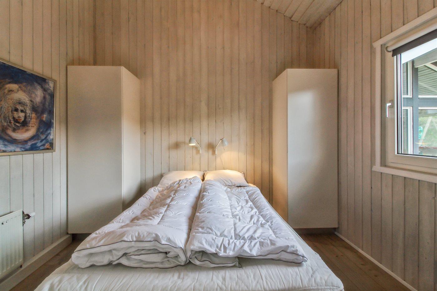 Der er i alt 4 soveværelser. Sovepladserne fordeler sig på: 6 sovepladser i dobbeltsenge. 2 sovepladser i køjeseng. Derudover er der 1 stk. barneseng.