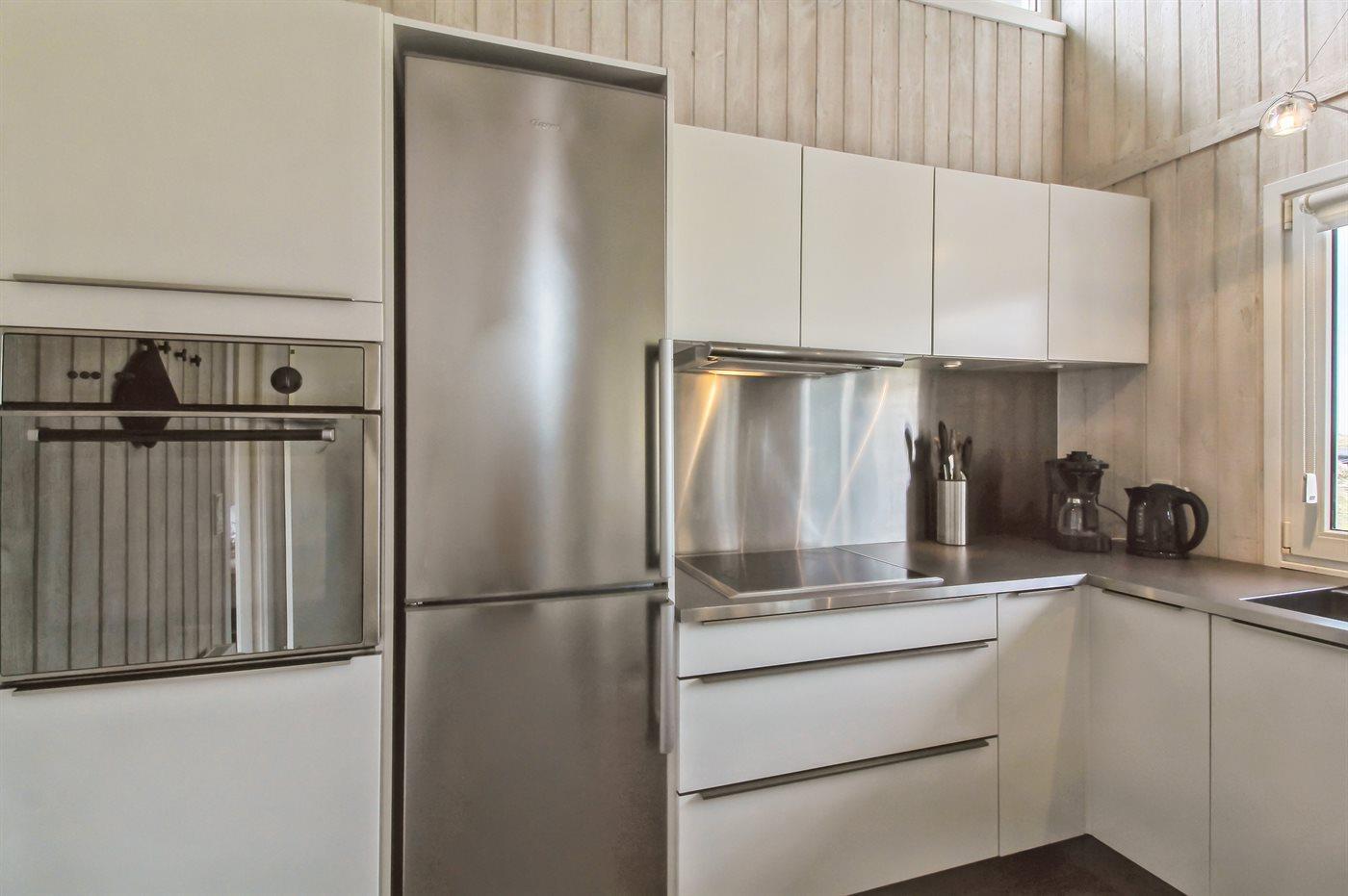 Køkkenet er udstyret med 1 køleskab. Der er 4 induktionskogeplader, varmluftovn, mikrobølgeovn samt opvaskemaskine.