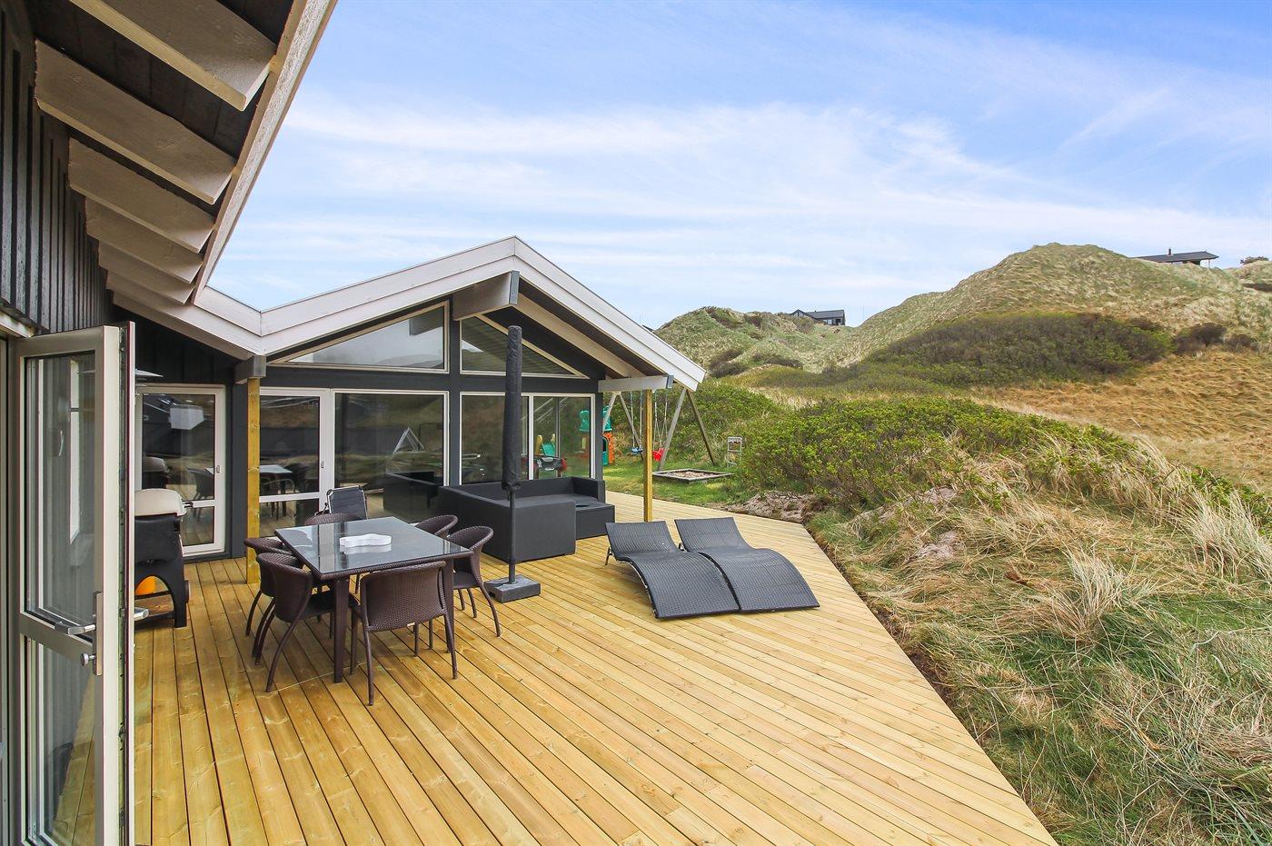 Fantastisk sommerhus med havudsigt, aktivitetsrum og stor terrasse nær Vesterhavet.