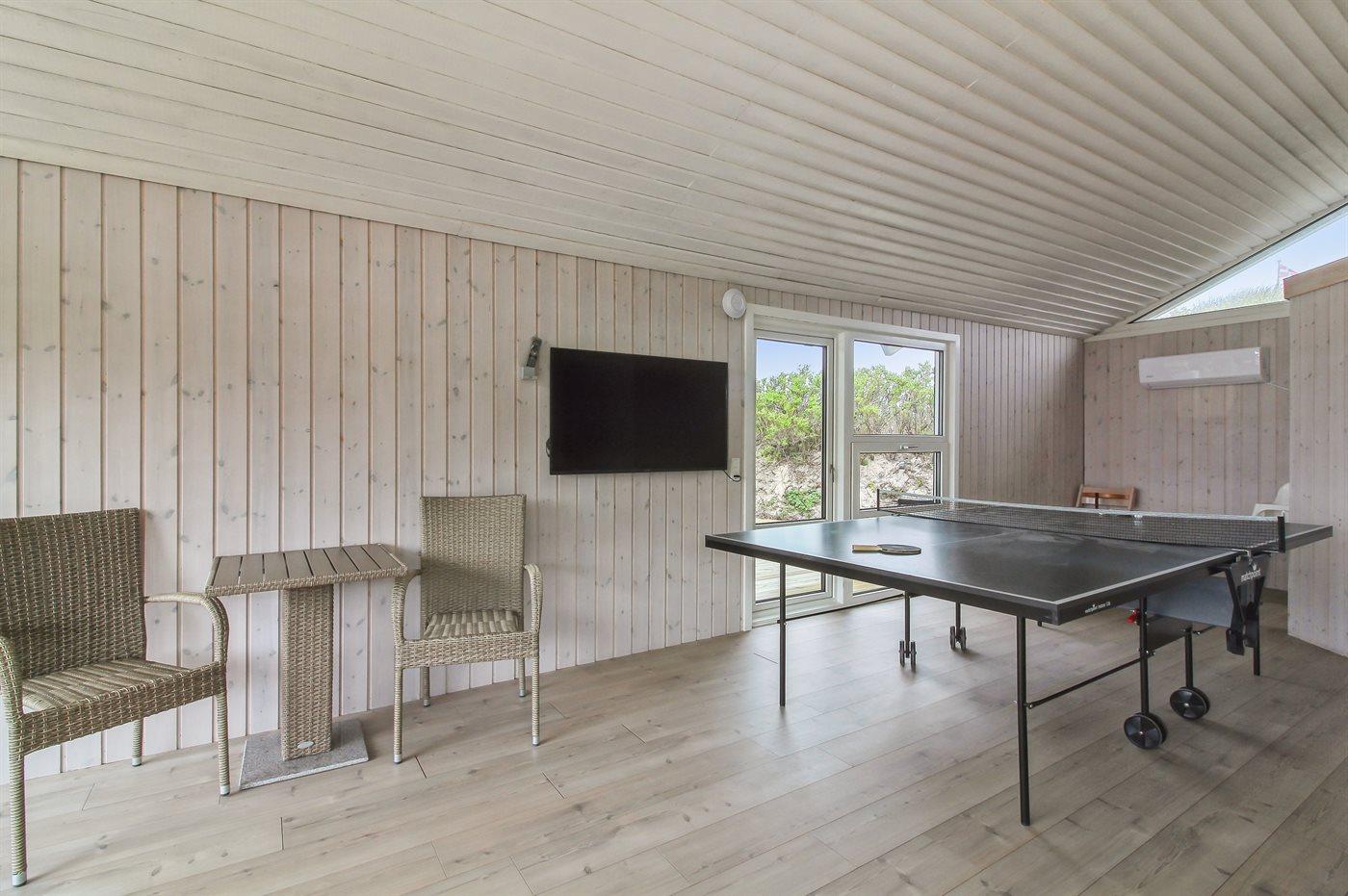 I aktivitetsrummet er der følgende udstyr: Bordtennis. Bordfodbold.