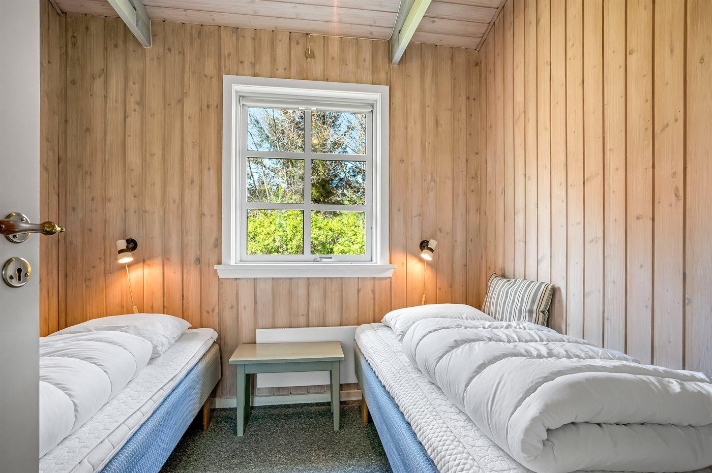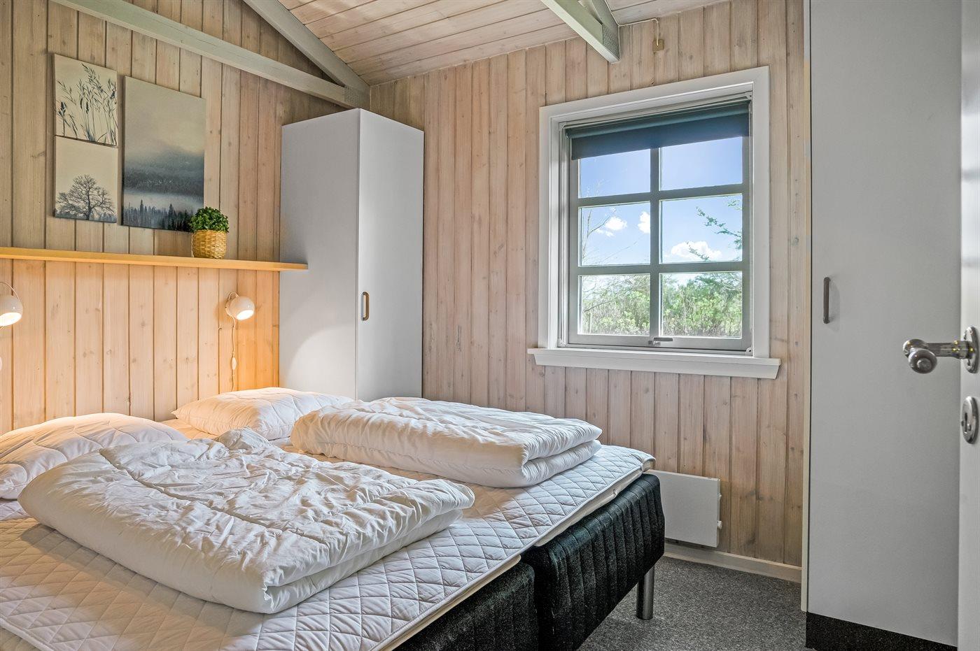 Der er i alt 3 soveværelser. Sovepladserne fordeler sig på: 2 sovepladser i dobbeltseng. 2 sovepladser i enkeltsenge. 2 sovepladser i køjeseng.