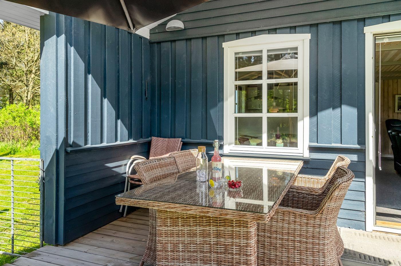 Ferieboligen er beliggende på en 2181 m² stor naturgrund. Grunden er indhegnet. Der er 759 m til havet. Nærmeste forretning er beliggende i en afstand af 1000 m. Til ferieboligen hører 30 m² terrasseareal. Desuden er der 30 m² overdækket terrasse. Parkering ved ferieboligen.