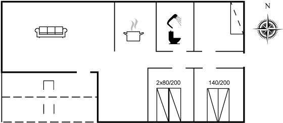 Der er i alt 3 soveværelser. Sovepladserne fordeler sig på: 4 sovepladser i dobbeltsenge. 1 soveplads i enkeltseng.