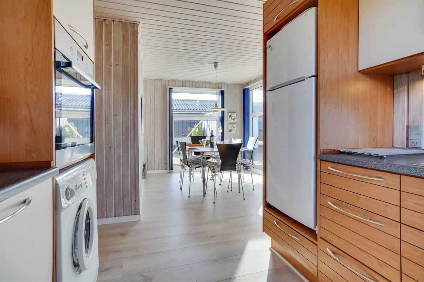 Køkkenet er udstyret med 1 køleskab. Der er 4 keramiske kogeplader, varmluftovn, mikrobølgeovn samt opvaskemaskine.