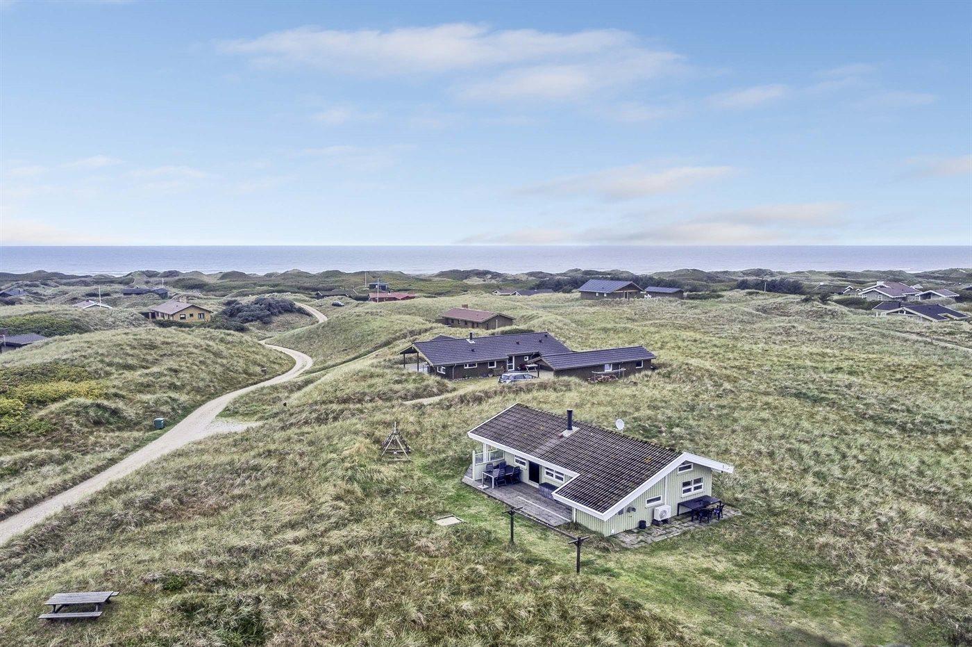 Moderniseret sommerhus beliggende på klitgrund og med panoramahavudsigt fra såvel stue, terrasse som grunden, tæt på dejlig badestrand og flot natur.
