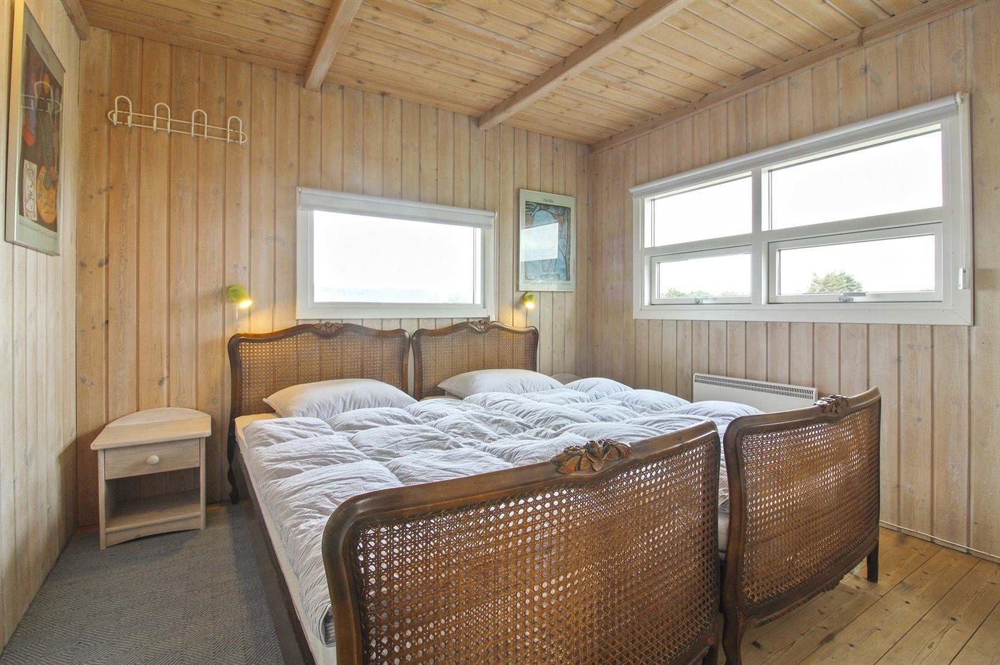 Der er i alt 3 soveværelser. Sovepladserne fordeler sig på: 2 sovepladser i dobbeltseng. 2 sovepladser i enkeltsenge. 2 sovepladser i køjeseng. Derudover er der 1 stk. barneseng.