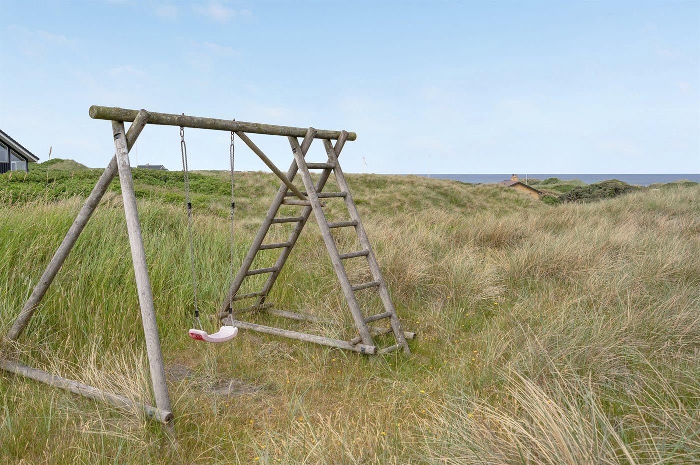 Ferieboligen er beliggende på en 2116 m² stor naturgrund. Der er 400 m til havet. Nærmeste forretning er beliggende i en afstand af 1800 m. Til ferieboligen hører 20 m² terrasseareal. Desuden er der 20 m² overdækket terrasse. Der er redskabsrum. Gynge. Sandkasse. Parkering ved ferieboligen.