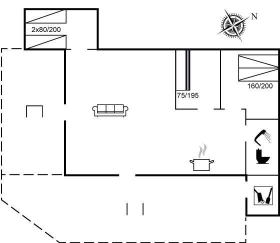 Sommerhuset egner sig til 6 personer samt 1 barn op til 3 år. Ferieboligen er på 67 m² og er bygget i 1989. I 2008 gennemgik ferieboligen en delvis renovering. Det er ikke tilladt at medbringe husdyr. Ferieboligen er udstyret med energibesparende varmepumpe. Der er gulvvarme i alle klinkegulve. Ferieboligen har vaskemaskine. Tørretumbler. Frysekapacitet på 60 liter. Der er desuden brændeovn. Til de små er der 1 stk. barnestol.