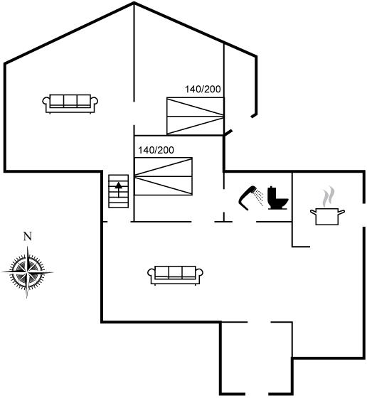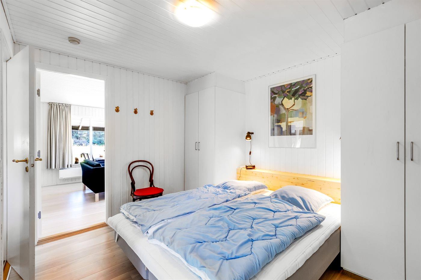 Der er i alt 2 soveværelser. Sovepladserne fordeler sig på: 4 sovepladser i dobbeltsenge. Derudover er der 1 stk. barneseng.