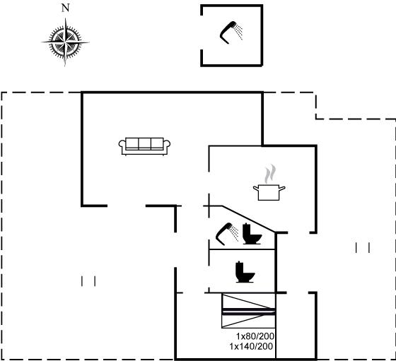 Der er i alt 1 soveværelse. Sovepladserne fordeler sig på: 2 sovepladser i dobbeltseng. 2 sovepladser i enkeltsenge.1 soveplads i køjeseng.
